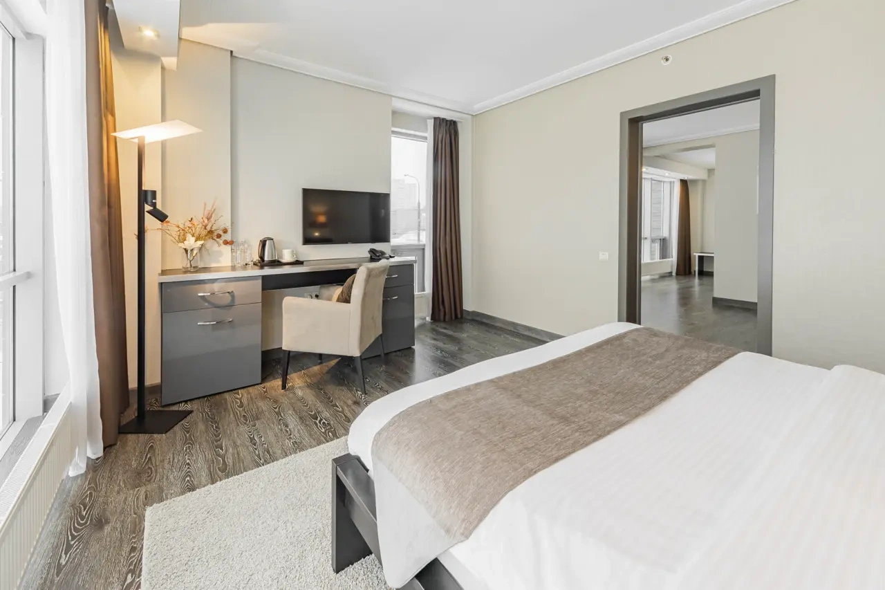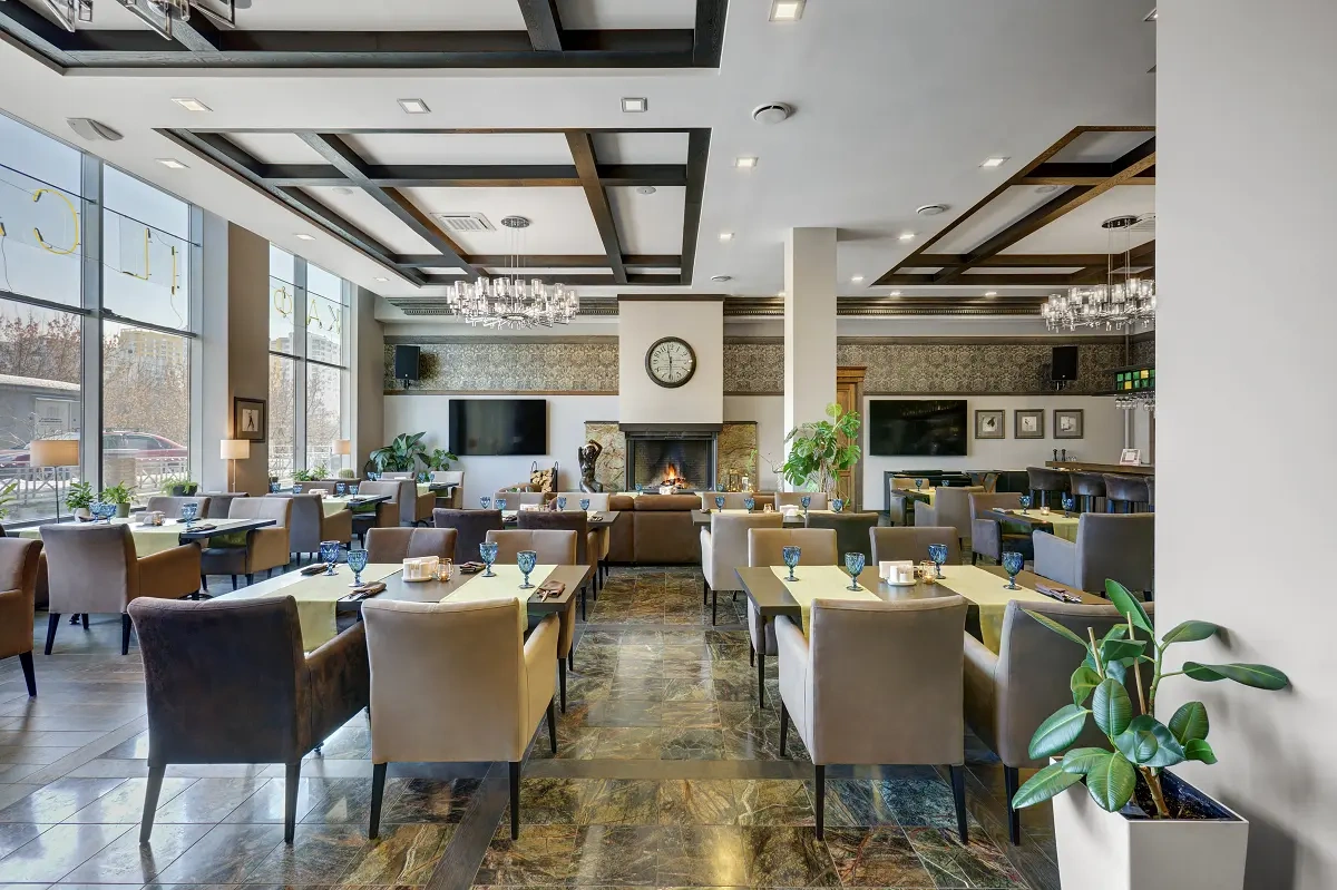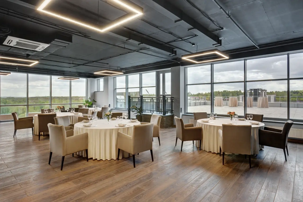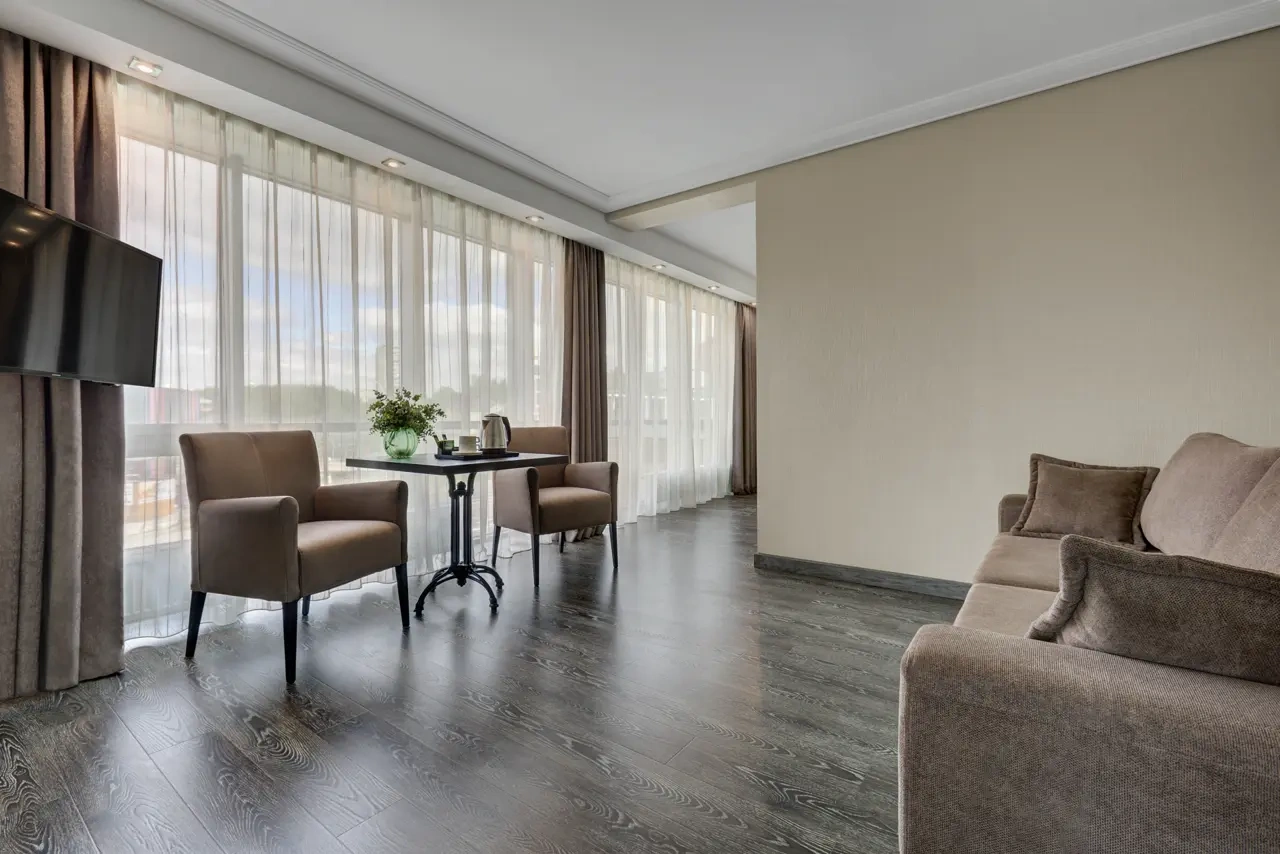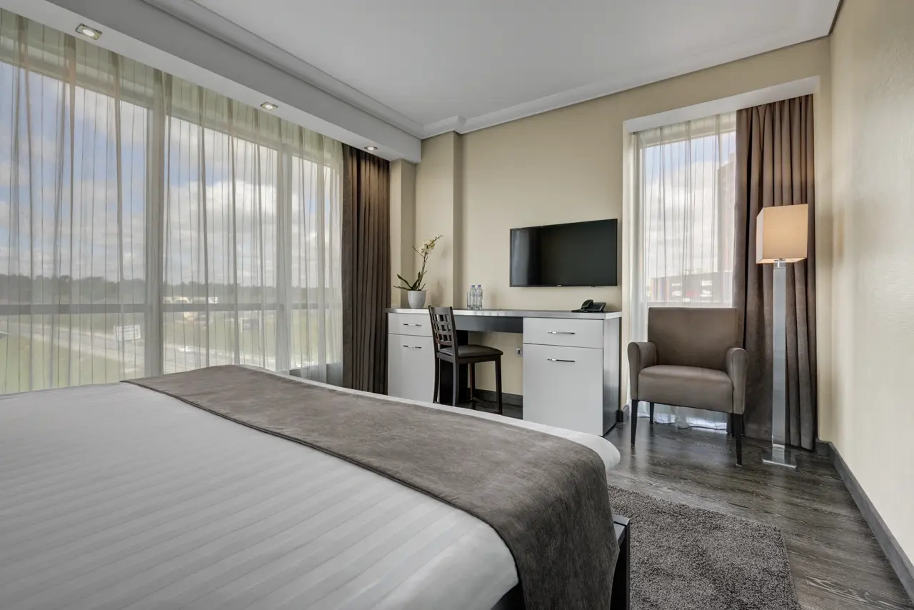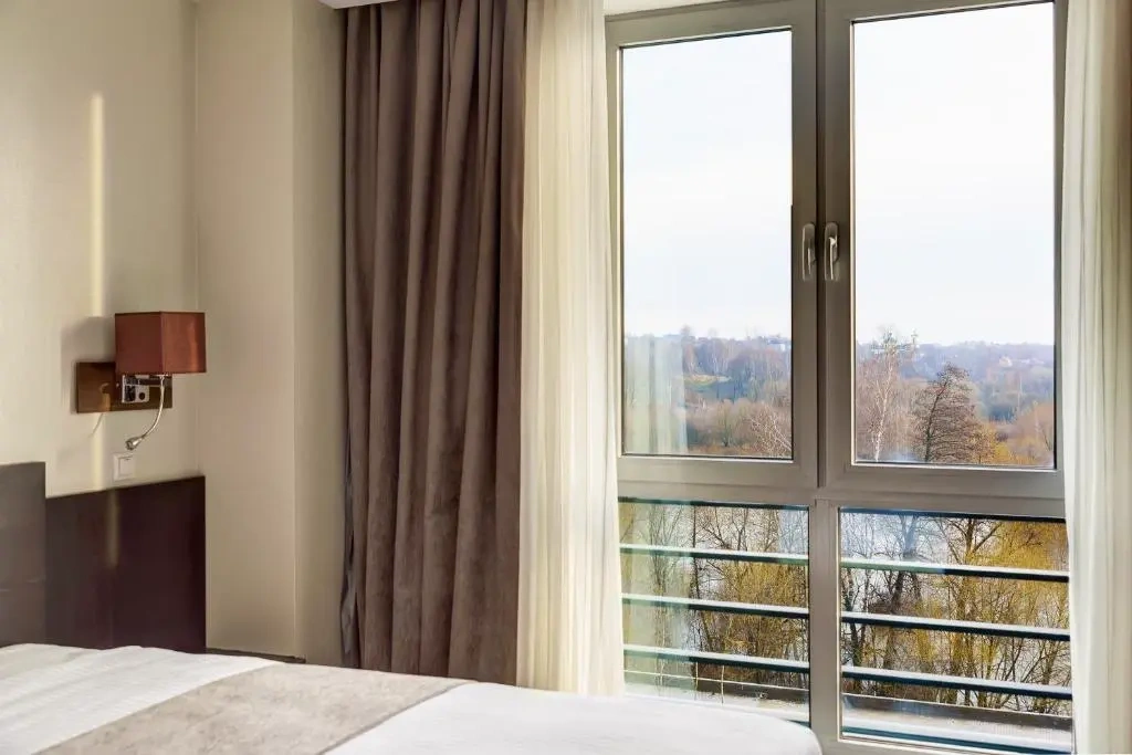 Номерной фонд представлен 102 современными номерами 3 категорий: "Стандарт", "Бизнес", "Люкс", большая часть из которых имеет панорамные окна.
