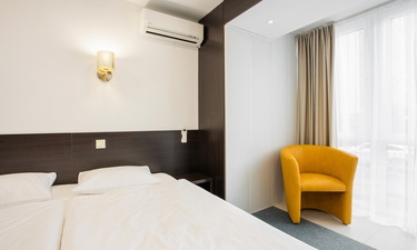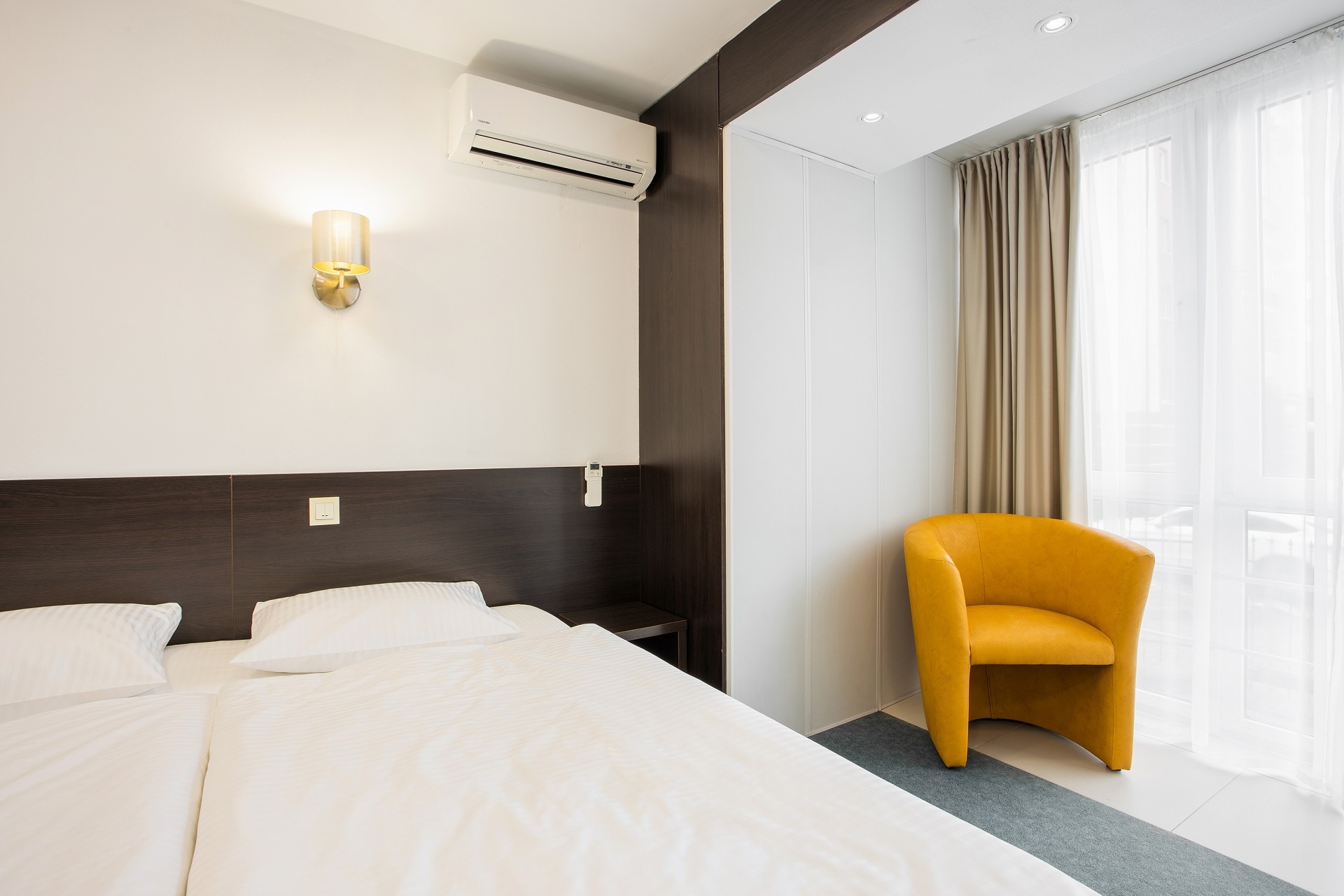 Для заселения представлены уютные и комфортабельные номера, обставленные мебелью с отделкой из дерева и удобной кроватью, современной техникой, включая сплит-систему, сейфом и собственной ванной комнатой с феном.