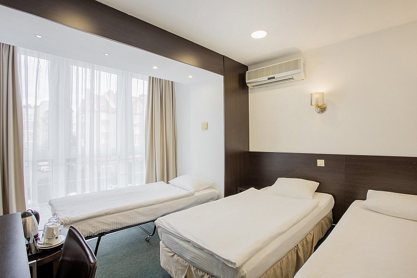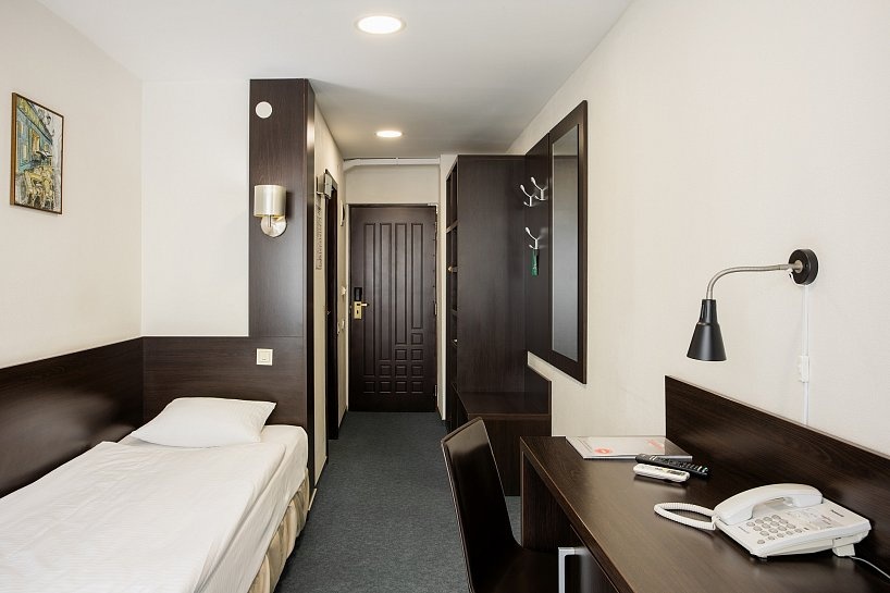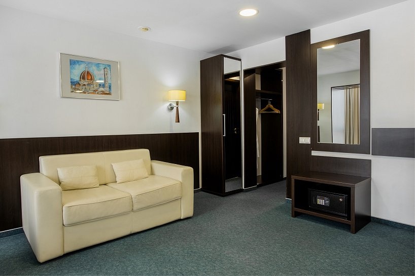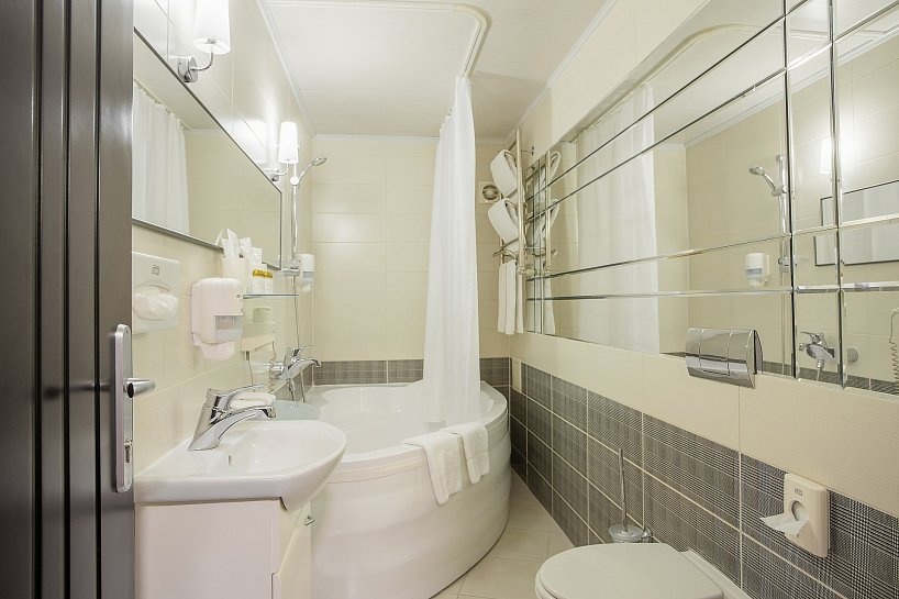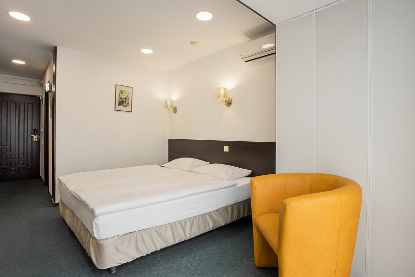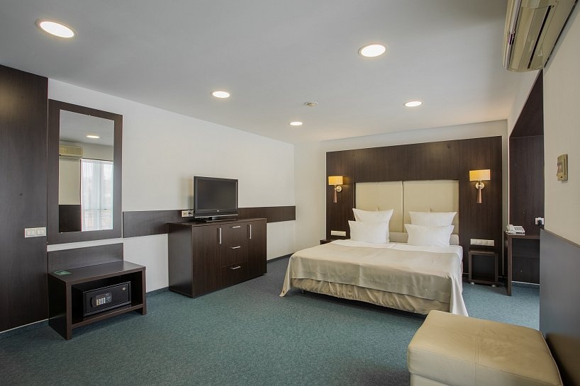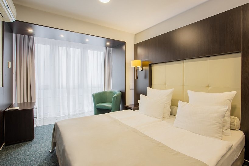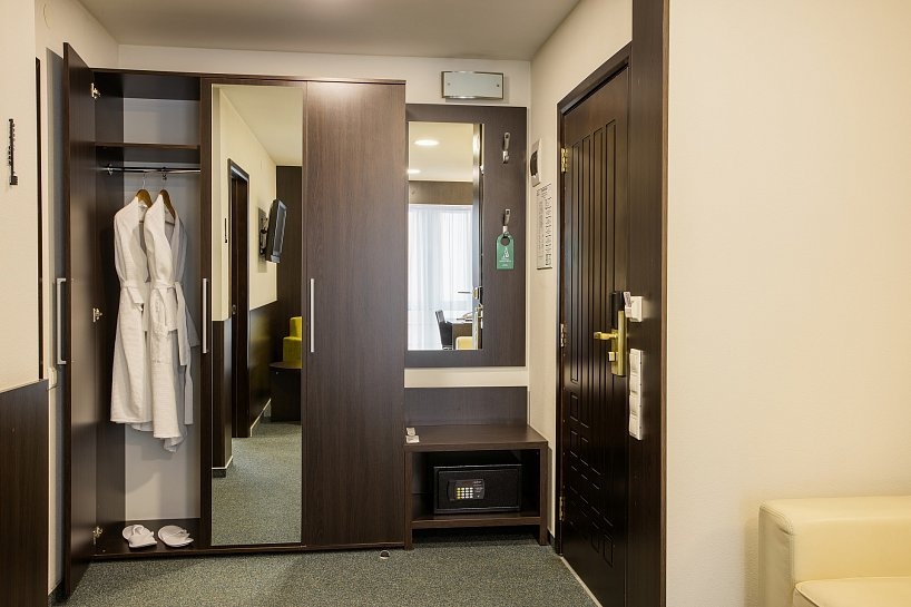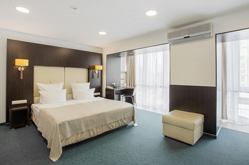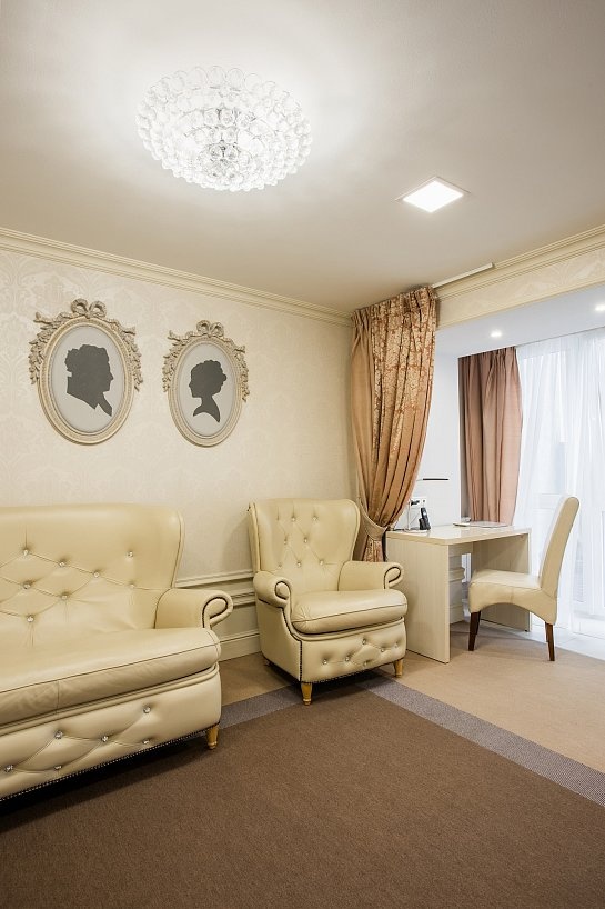 Заезд с 14:00. Расчётный час 12:00. Завтрак «шведский стол» включён в стоимость проживания*. Проходит ежедневно с 7:00 до 10:00. При раннем выезде предоставляется ланч-бокс (по предварительному запросу). В проживание возможно включить обеды и/или ужины (подробности уточнять у Администраторов). В гостинице 5 этажей, имеется лифт. Все номера в отеле без балконов, выходят на тихую сторону. Все номера для некурящих. Размещение с домашними животными запрещено. В отеле нет условий для размещения гостей с ограниченными возможностями здоровья. Уборка и смена полотенец ежедневная. Полная смена белья 1 раз в 3 дня (на 4-й день проживания). В номерах категории «Стандарт» при заселении комплиментарно предоставляется бутилированная вода и чайный набор (пополняется 1 раз в 3 дня на 4-й день проживания). В номерах категории «Люкс» и «Джуниор Сюит» вода и чайно-кофейный набор пополняется по мере использования. Имеется гостевой кулер с питьевой водой. Ресепшен работает круглосуточно. На Ресепшене возможно заказать экскурсии по городу и области**. Ранний заезд и поздний выезд: размещение индивидуальных гостей без бронирования услуги «Гарантированный ранний заезд» до 14:00 производится по факту готовности номеров без доплаты при отсутствии возможности предоставить услугу «Поздний выезд», после 12:00 гости могут воспользоваться бесплатной камерой хранения багажа услуги «Гарантированный ранний заезд» и «Поздний выезд» предоставляются по предварительному бронированию при наличии свободных номеров. Тарифы и условия предоставления размещены в разделе «Услуги». Правила размещения детей: перечень документов для размещения несовершеннолетних гостей представлен в разделе «Правовая информация» по запросу бесплатно может быть предоставлена детская кроватка дети до 7 лет проживают бесплатно без предоставления дополнительного места, располагаясь на кровати с родителями, на основных местах дети старше 7 лет проживают по основному тарифу на основных местах, либо на дополнительном месте (услуга платная). Правила предоставления дополнительного места в номер: дополнительное место не устанавливается в номера категорий «Одноместный Стандарт» и «Джуниор Сюит Романтик» стоимость дополнительного места - 1800 руб/сутки (завтрак включен) Типы дополнительных мест (фото в галереях номеров): номер «Двухместный Стандарт» - евро-раскладушка номер «Люкс» - односпальный диван номер «Джуниор Сюит» - односпальный диван, второе место - евро-раскладушка *в период низкой загрузки предоставляется континентальный завтрак с сохранением ассортимента **полный перечень услуг представлен в разделе «Услуги»