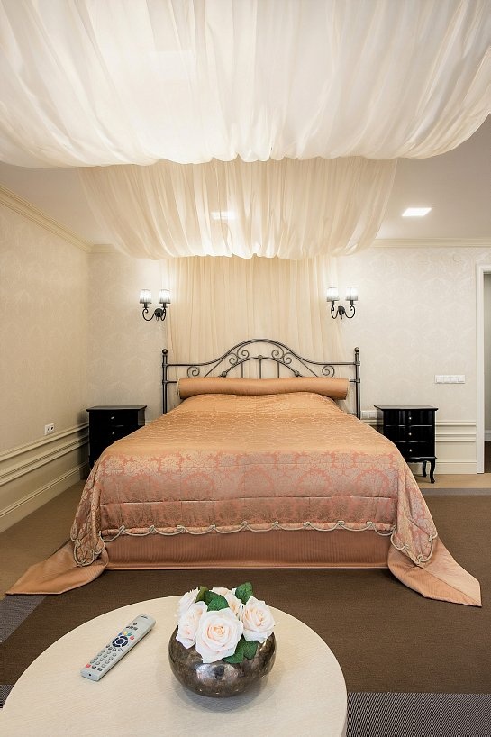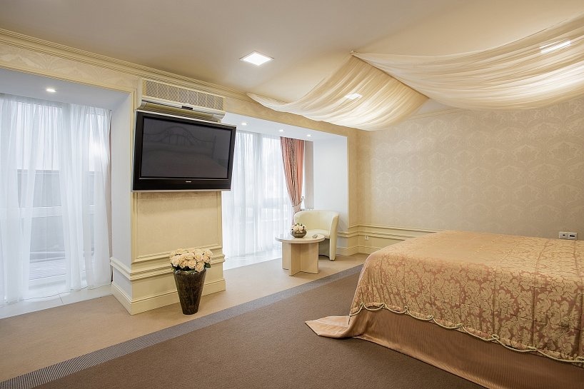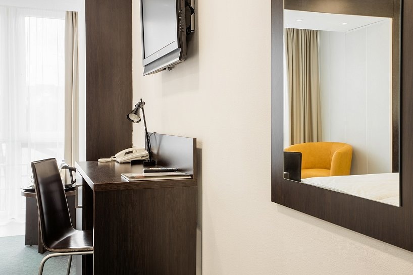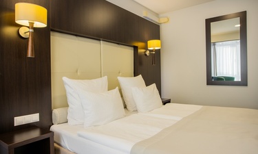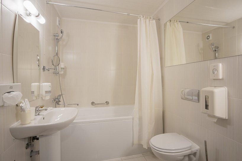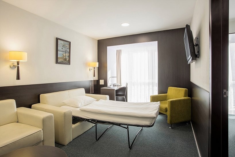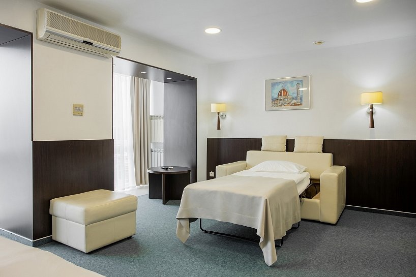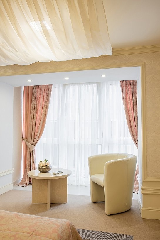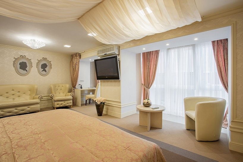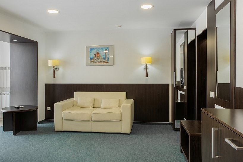 Заезд с 14:00. Расчётный час 12:00. Завтрак «шведский стол» включён в стоимость проживания*. Проходит ежедневно с 7:00 до 10:00. При раннем выезде предоставляется ланч-бокс (по предварительному запросу). В проживание возможно включить обеды и/или ужины (подробности уточнять у Администраторов). В гостинице 5 этажей, имеется лифт. Все номера в отеле без балконов, выходят на тихую сторону. Все номера для некурящих. Размещение с домашними животными запрещено. В отеле нет условий для размещения гостей с ограниченными возможностями здоровья. Уборка и смена полотенец ежедневная. Полная смена белья 1 раз в 3 дня (на 4-й день проживания). В номерах категории «Стандарт» при заселении комплиментарно предоставляется бутилированная вода и чайный набор (пополняется 1 раз в 3 дня на 4-й день проживания). В номерах категории «Люкс» и «Джуниор Сюит» вода и чайно-кофейный набор пополняется по мере использования. Имеется гостевой кулер с питьевой водой. Ресепшен работает круглосуточно. На Ресепшене возможно заказать экскурсии по городу и области**. Ранний заезд и поздний выезд: размещение индивидуальных гостей без бронирования услуги «Гарантированный ранний заезд» до 14:00 производится по факту готовности номеров без доплаты при отсутствии возможности предоставить услугу «Поздний выезд», после 12:00 гости могут воспользоваться бесплатной камерой хранения багажа услуги «Гарантированный ранний заезд» и «Поздний выезд» предоставляются по предварительному бронированию при наличии свободных номеров. Тарифы и условия предоставления размещены в разделе «Услуги». Правила размещения детей: перечень документов для размещения несовершеннолетних гостей представлен в разделе «Правовая информация» по запросу бесплатно может быть предоставлена детская кроватка дети до 7 лет проживают бесплатно без предоставления дополнительного места, располагаясь на кровати с родителями, на основных местах дети старше 7 лет проживают по основному тарифу на основных местах, либо на дополнительном месте (услуга платная). Правила предоставления дополнительного места в номер: дополнительное место не устанавливается в номера категорий «Одноместный Стандарт» и «Джуниор Сюит Романтик» стоимость дополнительного места - 1800 руб/сутки (завтрак включен) Типы дополнительных мест (фото в галереях номеров): номер «Двухместный Стандарт» - евро-раскладушка номер «Люкс» - односпальный диван номер «Джуниор Сюит» - односпальный диван, второе место - евро-раскладушка *в период низкой загрузки предоставляется континентальный завтрак с сохранением ассортимента **полный перечень услуг представлен в разделе «Услуги»
