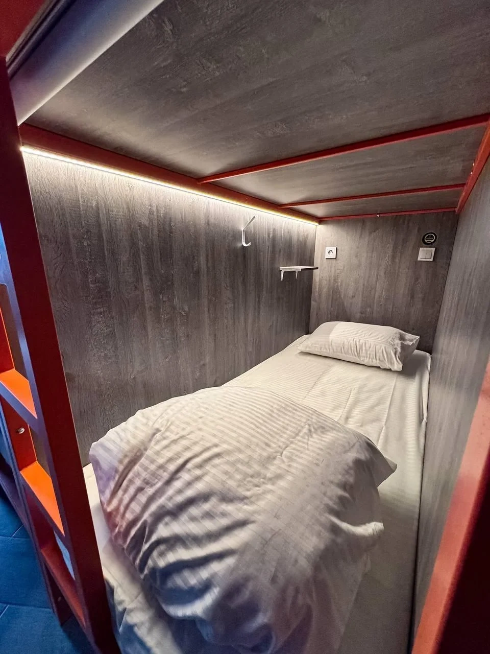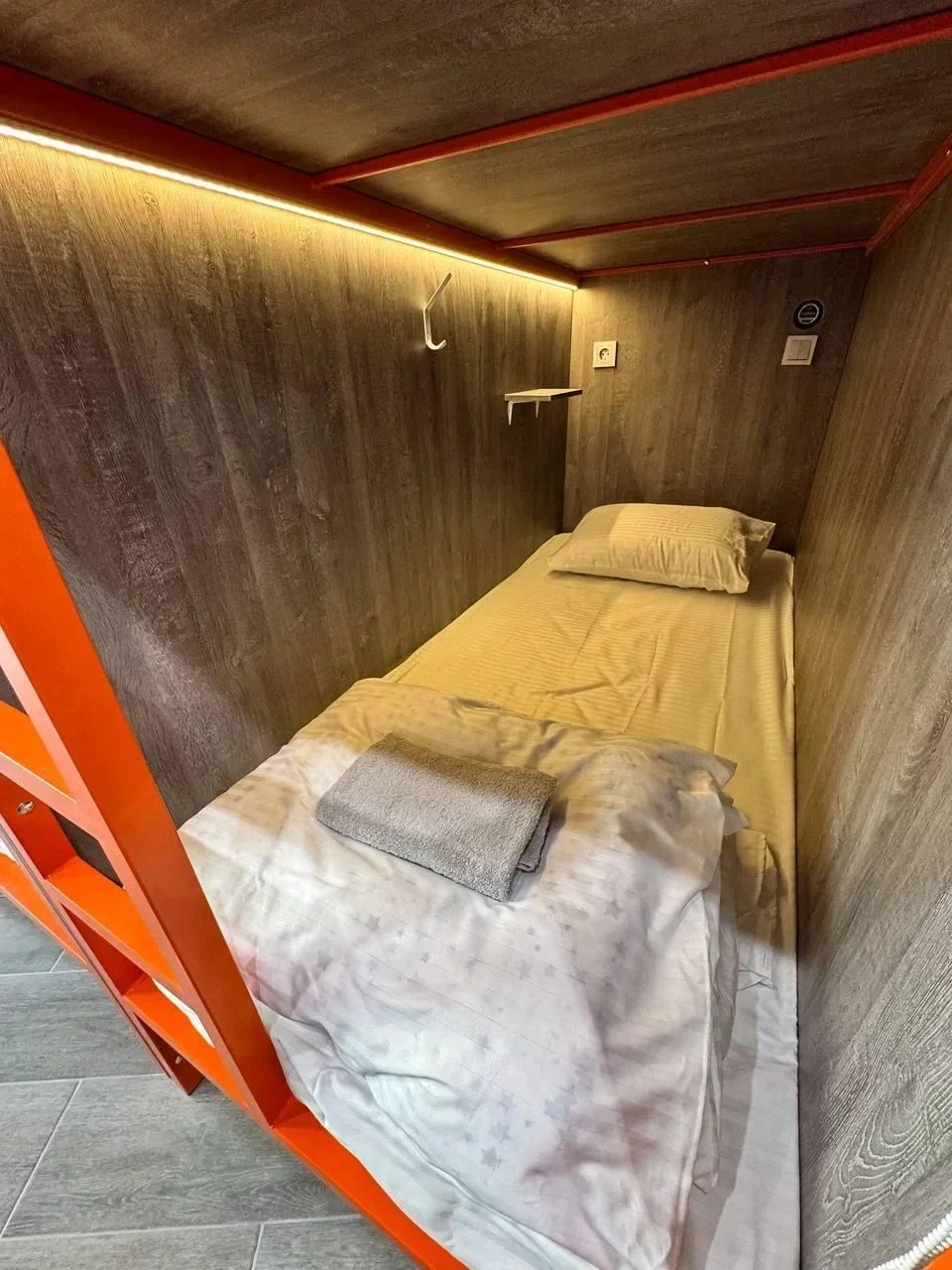 Вежливые и приятные администраторы, в комнатах чистота, регулярно убираются, чистое постельное белье. В капсуле есть личные подсветка и розетка. Предоставляют личный шкафчик с замком и полотенце. Душевые удобные и чистые. При необходимости можно постирать вещи, взять фен. Есть зона с красивым видом на город. Ночью не шумно, контингент хороший. Расположение классное, от метро очень близко. Впечатления положительные! Обязательно вернусь)