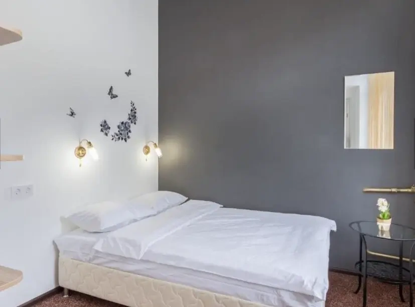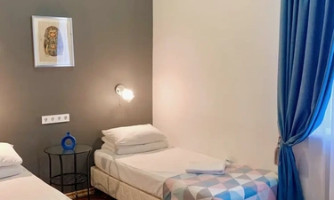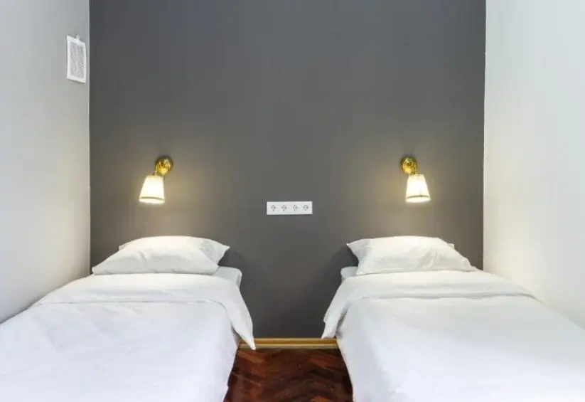 Очень грязно, мусор вываливается из урны и воняет на всю комнату, в туалете вонь хуже чем на вокзале. Подушка настолько серая что страшно на нее ложится, одеяло все в желтых пятнах. Нет ни тапочек, ни полотенец. Заселение удаленное, на всех комнатах кодовые замки, комнаты смешанные. Лифт работает только по магнитным ключам, которых на всех не хватает, а подниматься надо на 5 этаж, тем кто с багажом - очень неудобно. Истеричная администратор, хамит, повышает голос на гостей, таким не место в сфере услуг.