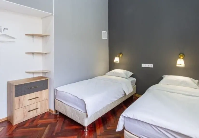 Удобное расположение. Центр, рядом метро, кафе где можно перекусить, удобные матрацы, шкафчик вместительный.