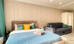 Спальные места - двуспальная кровать с ортопедическим матрасом и раскладной диван .