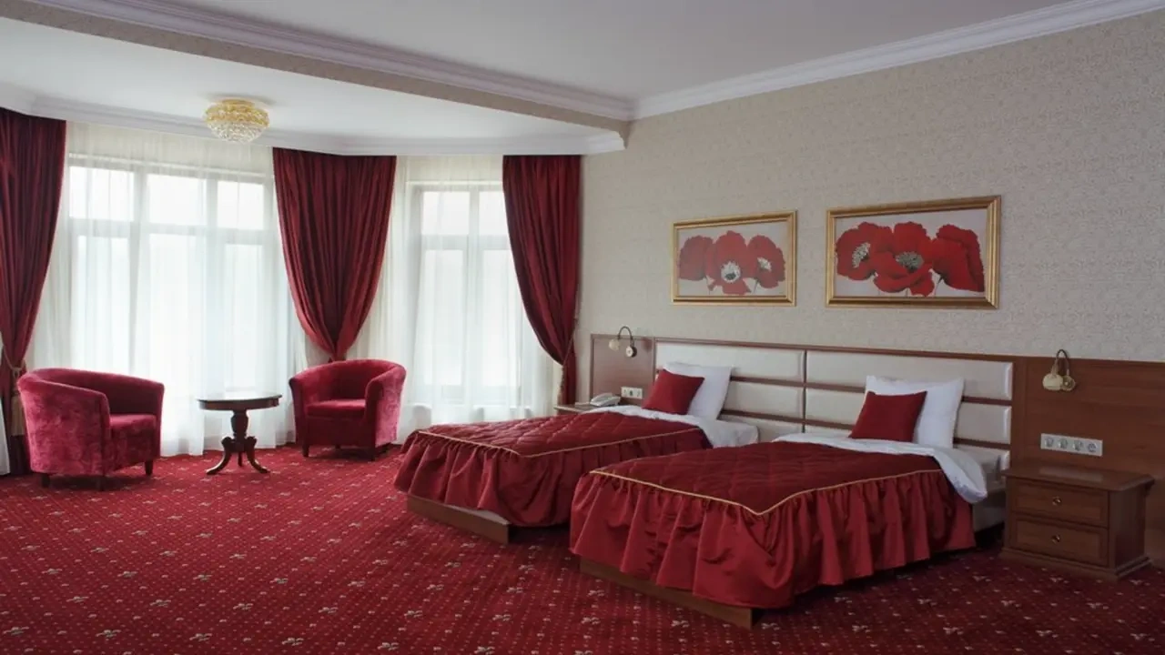 Современный номерной фонд состоит из 30 номеров, которые полностью оснащены для продолжительного и комфортного проживания. В каждой комнате установлены удобные кровати с белоснежным постельным бельем, кондиционер и телевизор. В индивидуальной ванной можно воспользоваться набором средств личной гигиены.