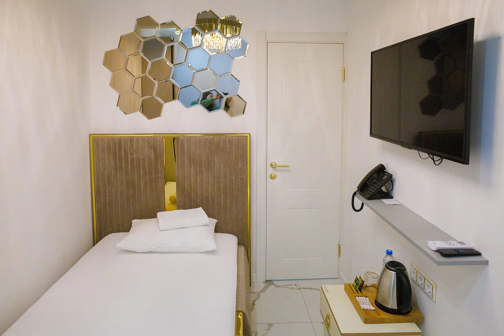 Неплохой номер за свои деньги) Мы брали самый маленький, так как планировали большую часть времени находиться на улице и гулять) Так как это центр Сочи мы легко добирались до любых нужных нам мест) В номере всё в нормальном состоянии, всё работает, для туристических поездок более чем хорошо)