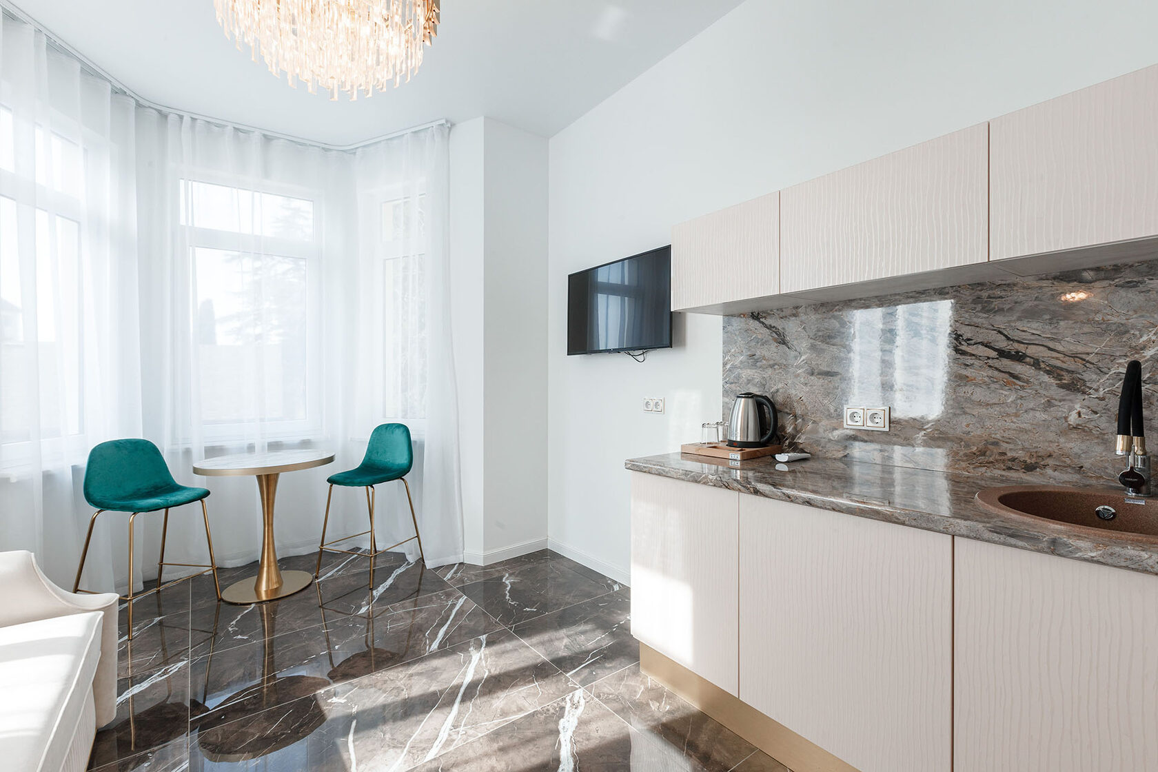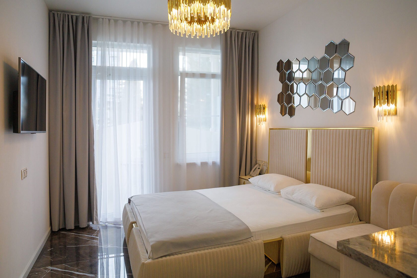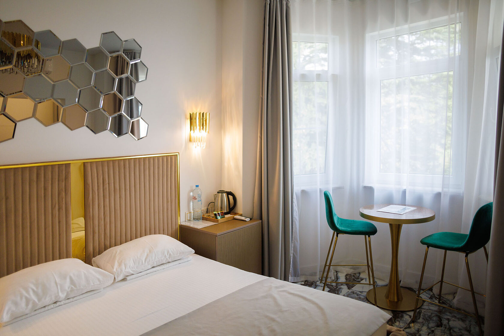 Классный отель! Приезжали с друзьями отдохнуть, остались довольные до ужаса))) Самое классное- территория. Виды с нее просто пушка. Так атмосферно! Там смотровая площадка, с которой есть вид на город, море, дендрарий???? Мы были впечатлены, конечно))) Номер стильный, дорого-богато, как говорится) но при этом цена адекватная, с учетом того, что сезон почти начался + 4 звезды отель. Чувствую, будем постоянными гостями :))) В ресторане готовят прекраснейше, персонал приятный)) Номер был уютный, чистый и комфортный.