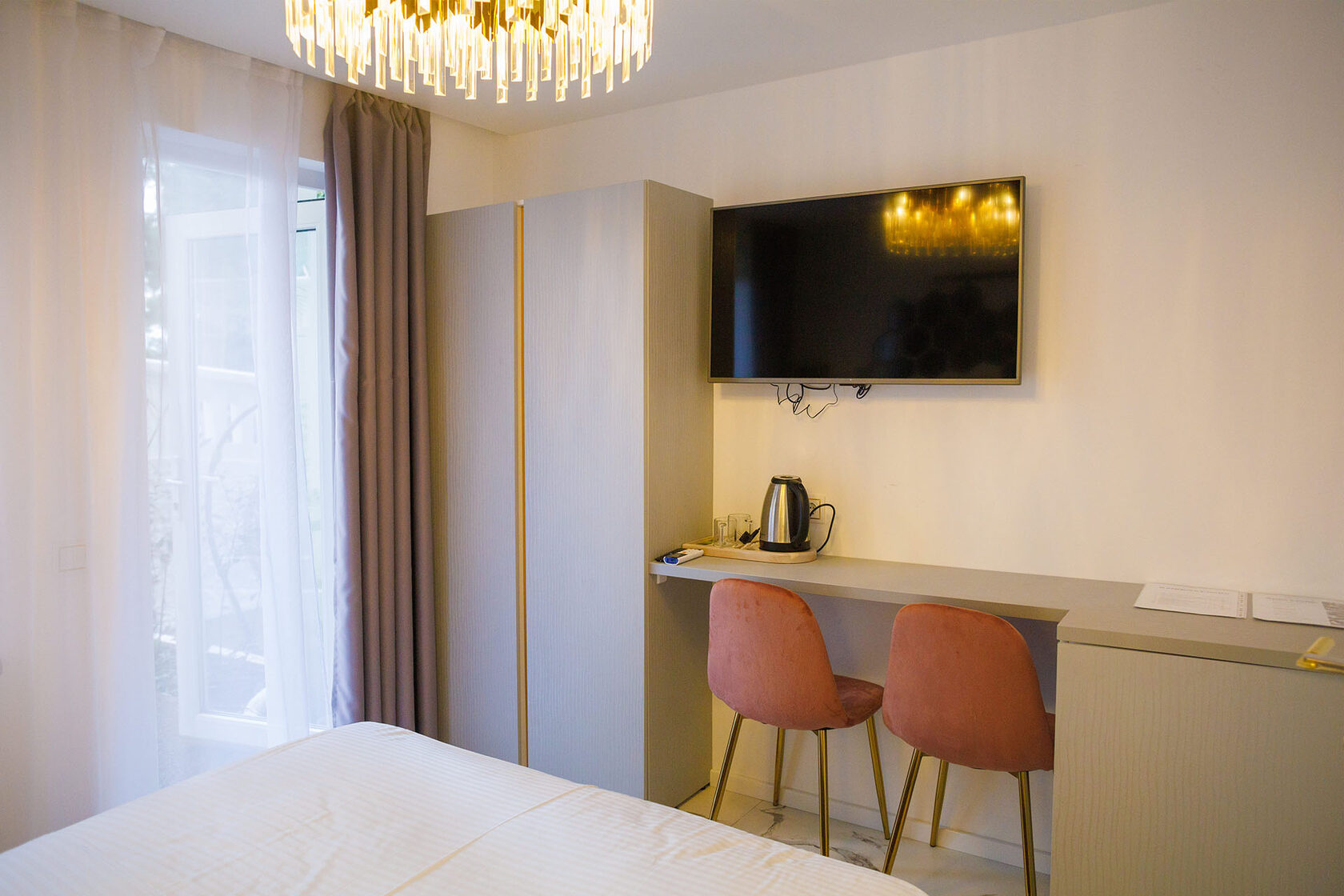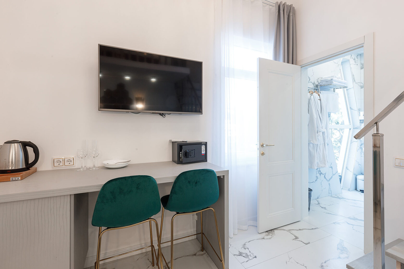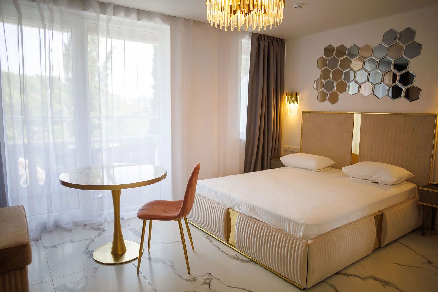 Классный отель! Приезжали с друзьями отдохнуть, остались довольные до ужаса))) Самое классное- территория. Виды с нее просто пушка. Так атмосферно! Там смотровая площадка, с которой есть вид на город, море, дендрарий???? Мы были впечатлены, конечно))) Номер стильный, дорого-богато, как говорится) но при этом цена адекватная, с учетом того, что сезон почти начался + 4 звезды отель. Чувствую, будем постоянными гостями :))) В ресторане готовят прекраснейше, персонал приятный)) Номер был уютный, чистый и комфортный.
