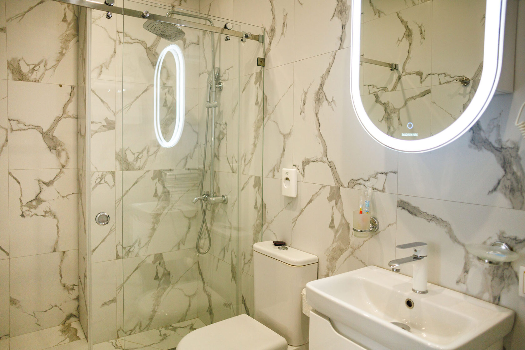 Свежий ремонт в номерах, современный, чисто, красивое здание недалеко от дендропарка, спокойное тихое место. Есть подогреваемый бассейн и джакузи на улице. Закрытая территория. Кондиционер в номере.