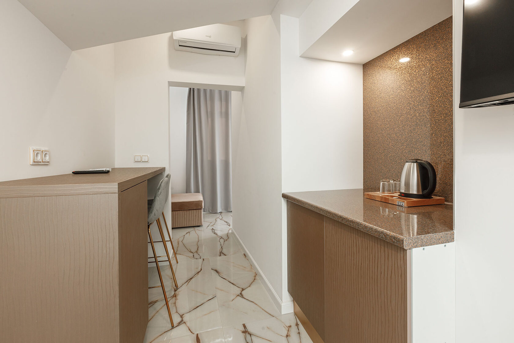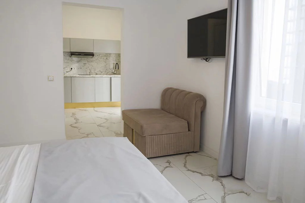Мне понравился номер – современный, стильный ремонт, всё нормально, везде чистота, уборка регулярная. Очень красивый вид на море с открытой террасы. Отдельно напишу про завтраки, классные сеты в меню, цена приятная, каша, салат, тост, напитки, выбор есть!