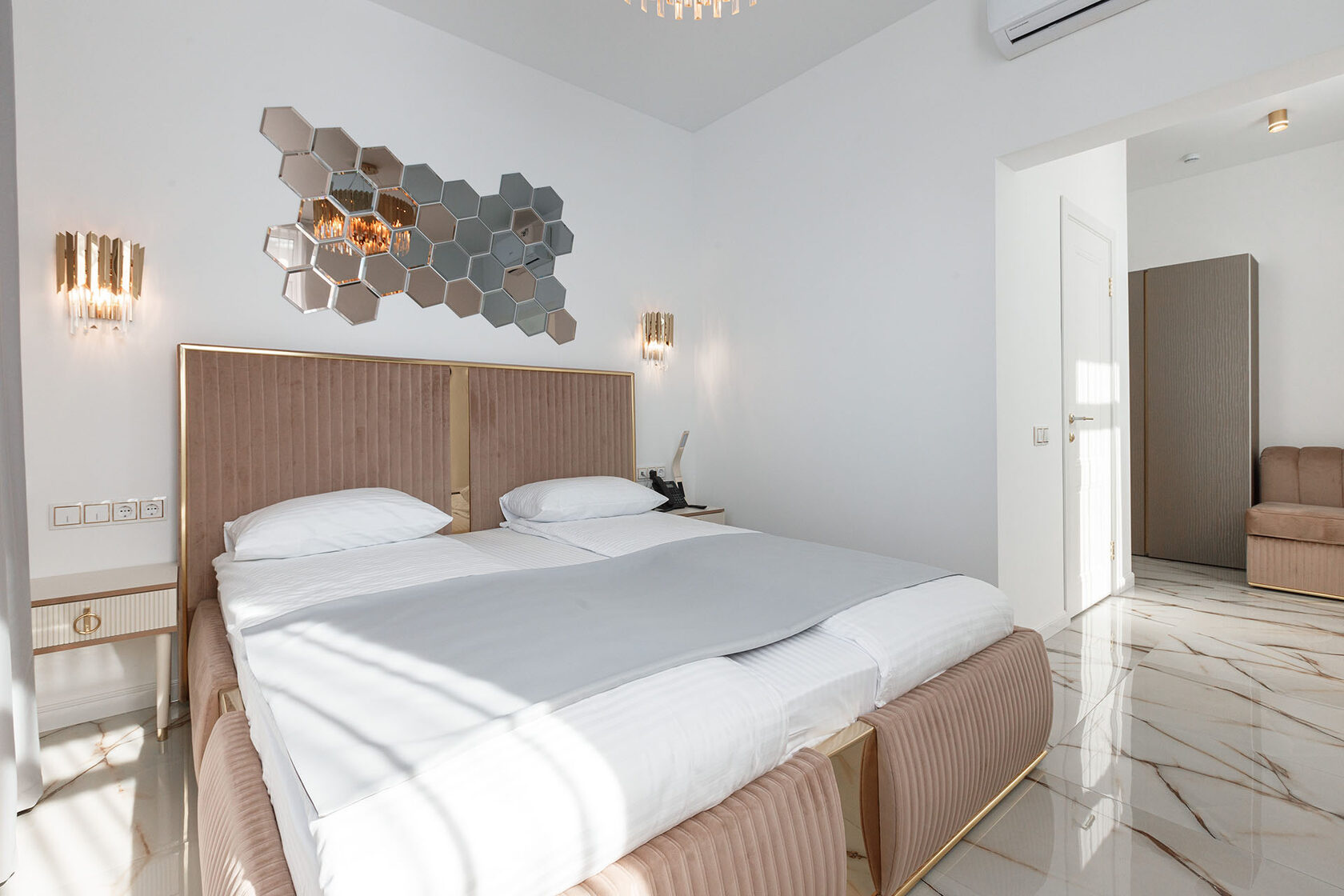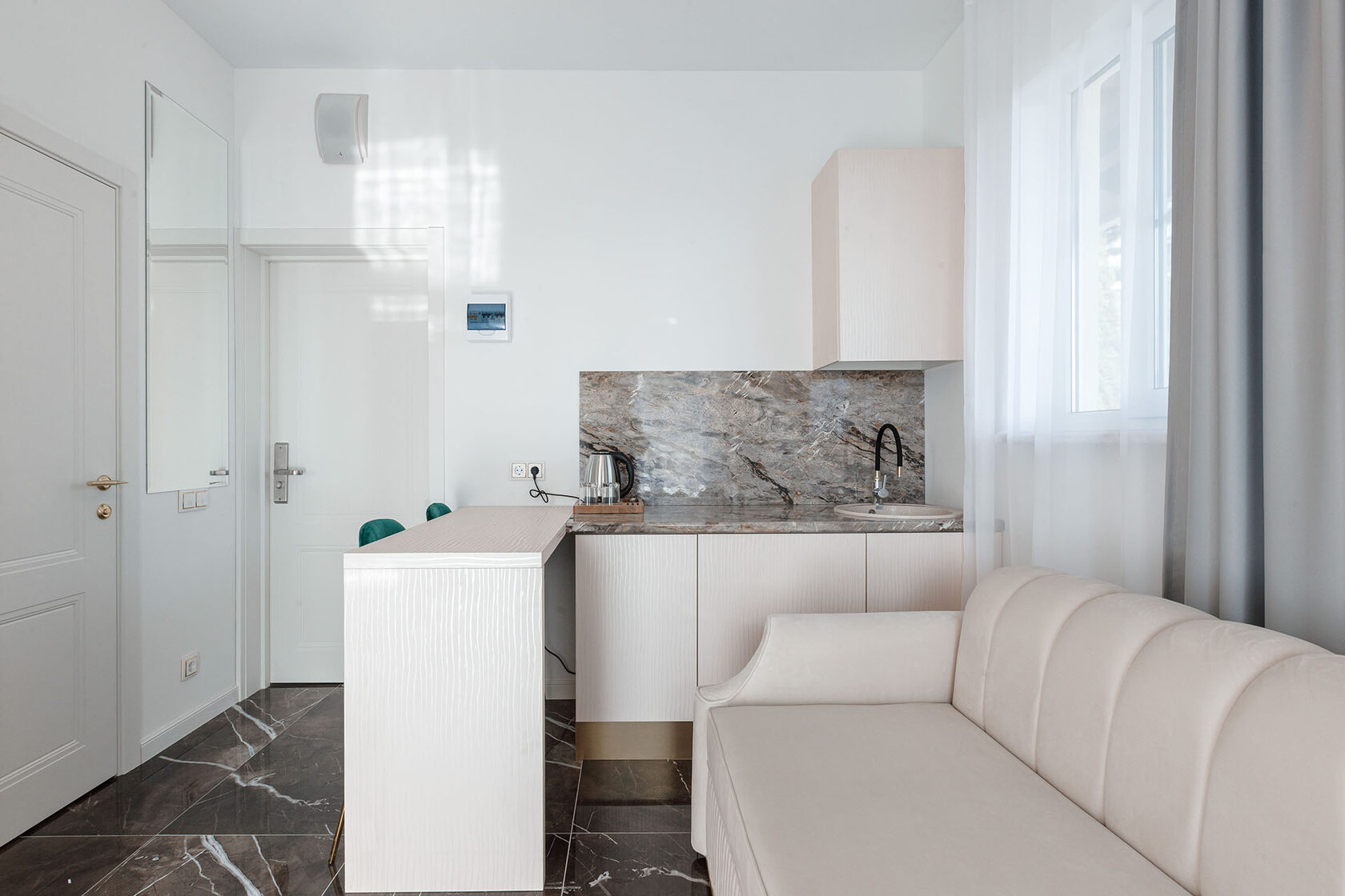 Стильные номера с видом на море обеспечат вам приятный отдых. Разместиться предлагается в современных номерах высокого уровня комфорта, каждый из которых оснащенных мебелью и техникой. В свободное время постояльцы могут отдохнуть в бассейне или в сауне, не выходя за территорию комплекса.