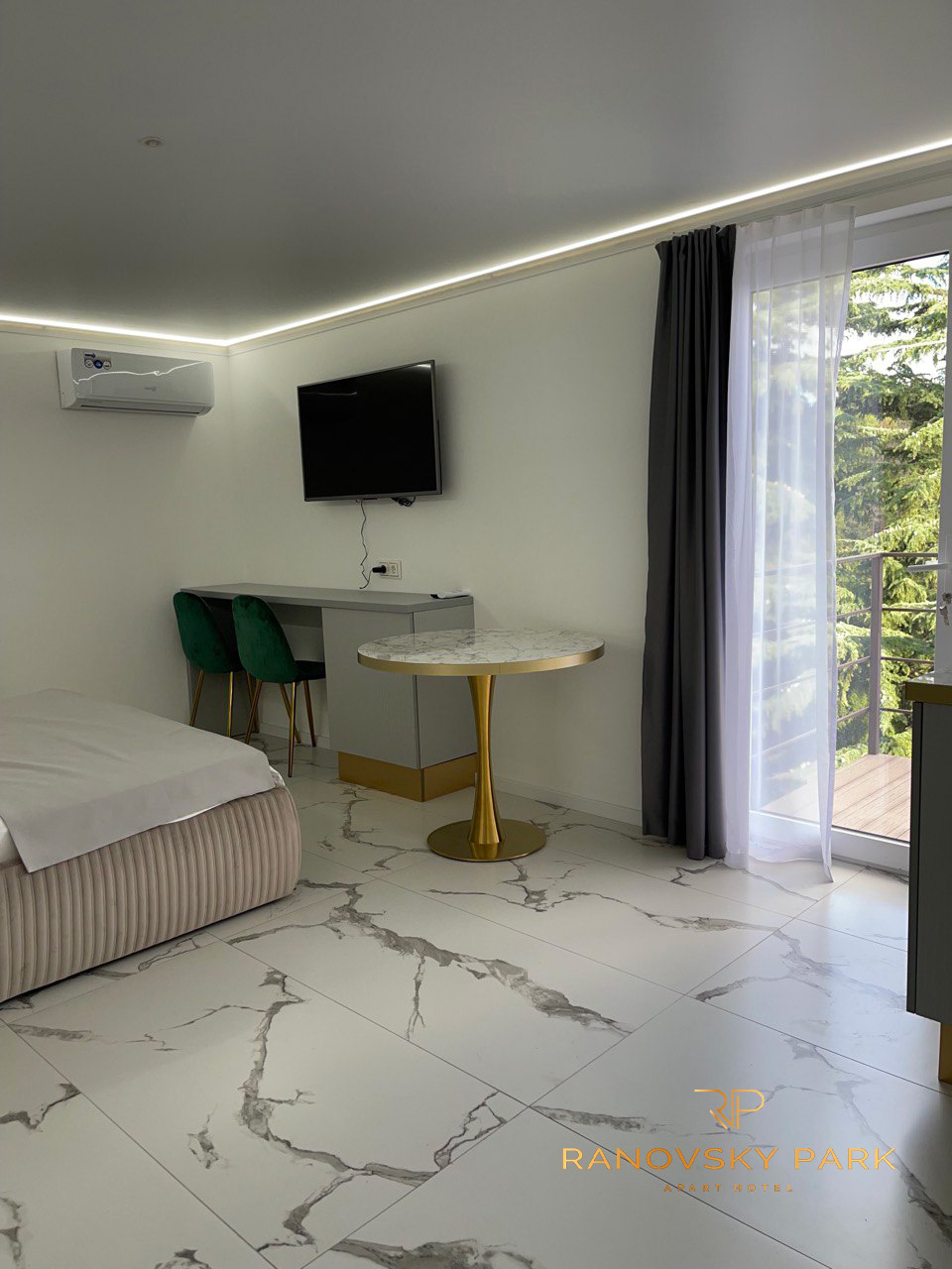 пушка бомба ! отель мега крутой ! я кайфанул на 100 процентов ! Баня , бассик , кино перед сном ! Номера супер комфортные и стилевые ) территория большая , даже есть детская огромная площадка.В ресторане очень хорошее меню , персонал отличный , вкусные коктейли на баре и отличные закуски под них . Вид на дендрарий балдежный , даже видно море. Я советую от души отель рановский парк! все огонь