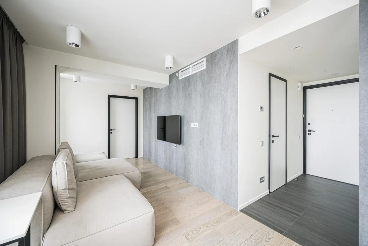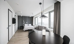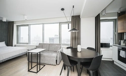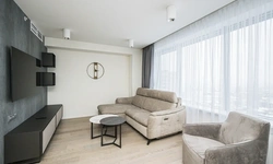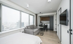 Удобная кровать, диван, возможность посидеть за барной стойкой. Посуда, микроволновка, полноценный холодильник с морозилкой.