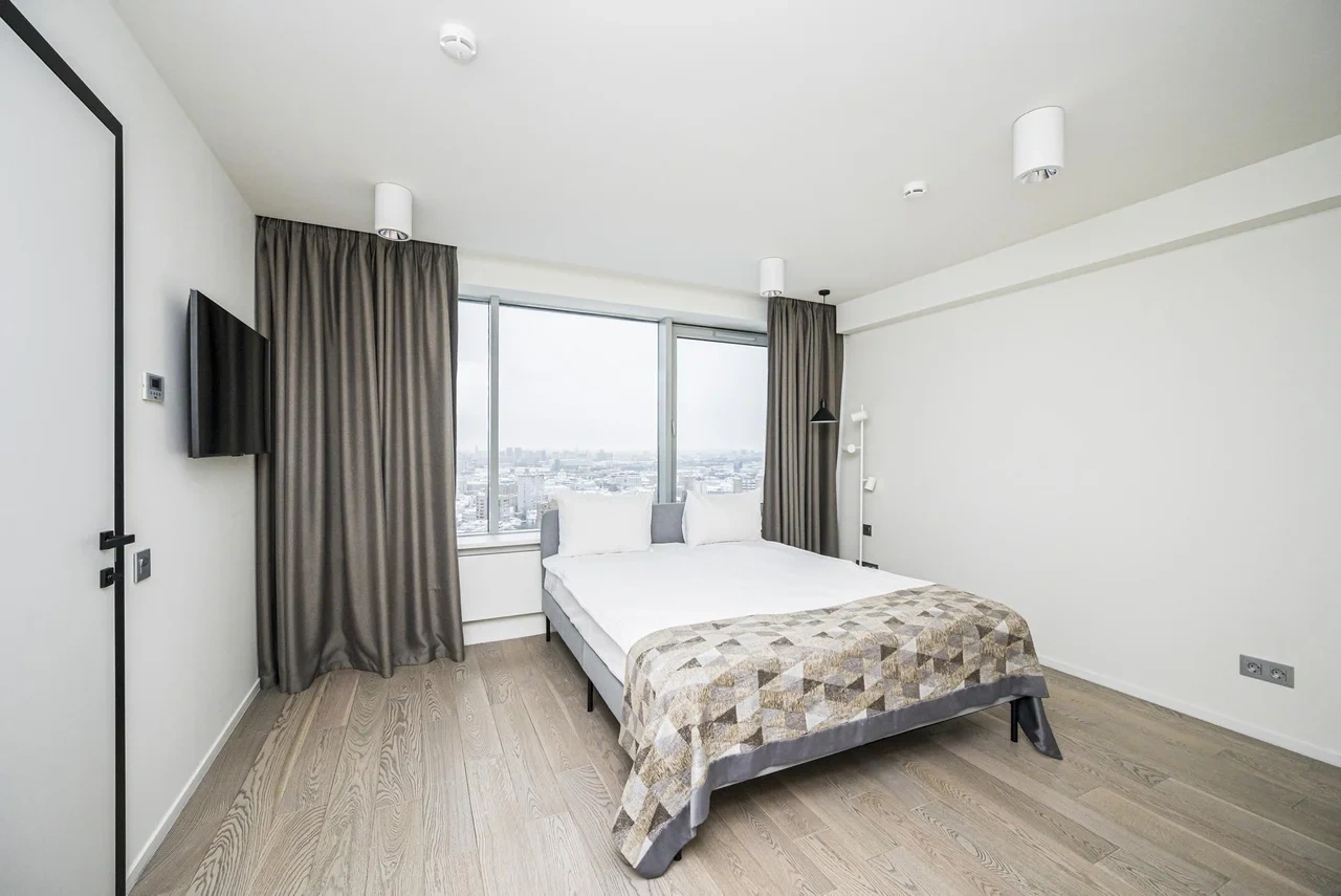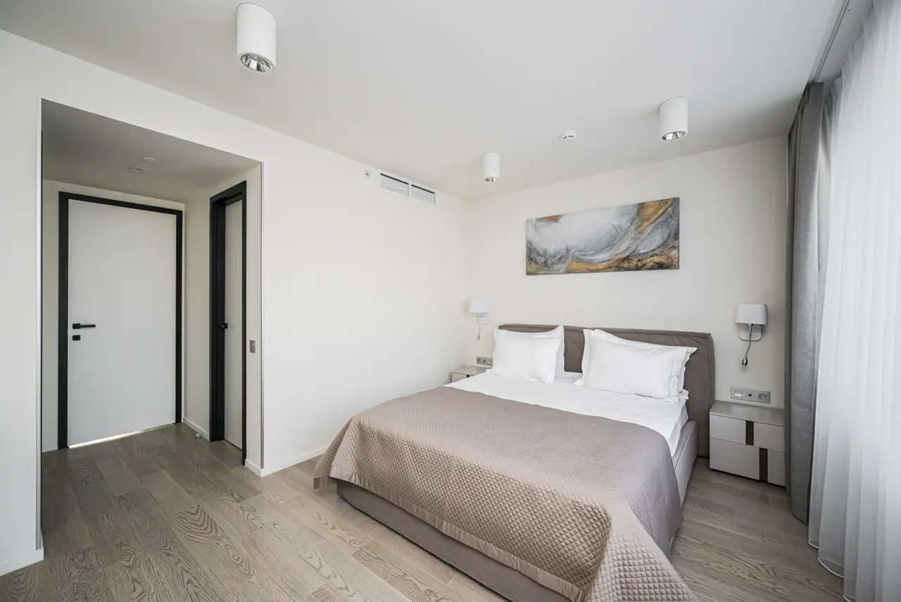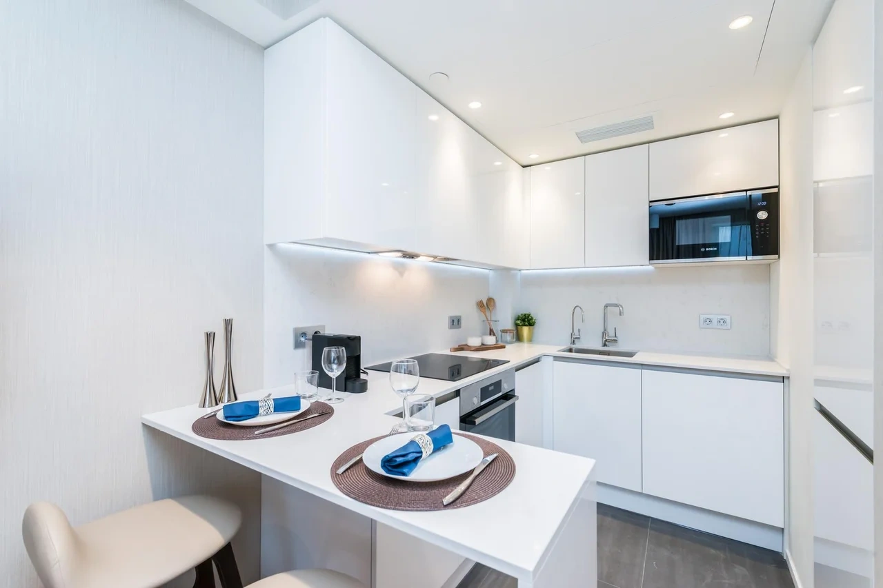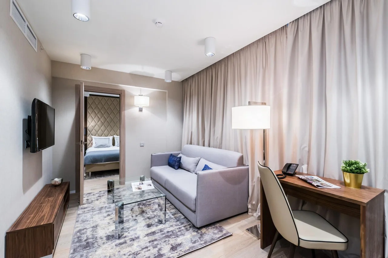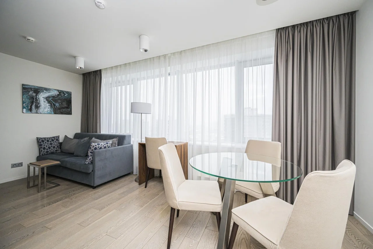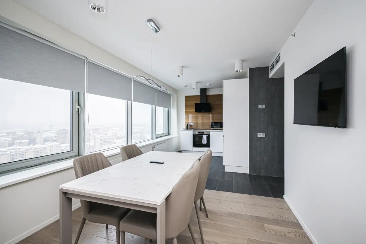 В числе удобств всех апартаментов — полностью оборудованная кухня со всеми приборами для приготовления и приема пищи, стиральная машина с сушкой, посудомоечная машина, встроенный питьевой фильтр. ТВ с иностранными каналами в каждой комнате, вай-фай, рабочее место, гардеробная, ванная, дополнительный с/у и шикарный вид с высокого этажа. По утрам гостям подают континентальный завтрак.