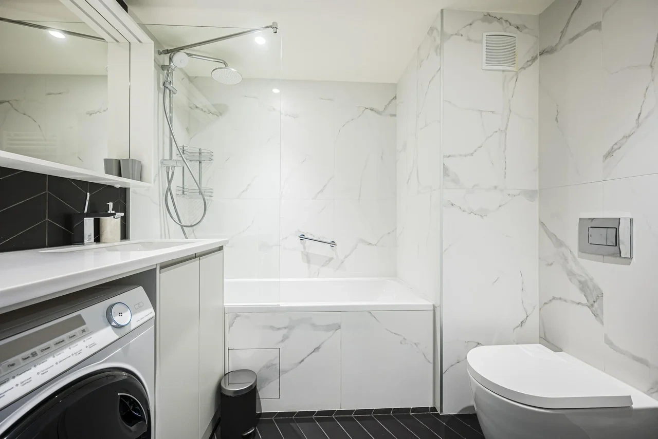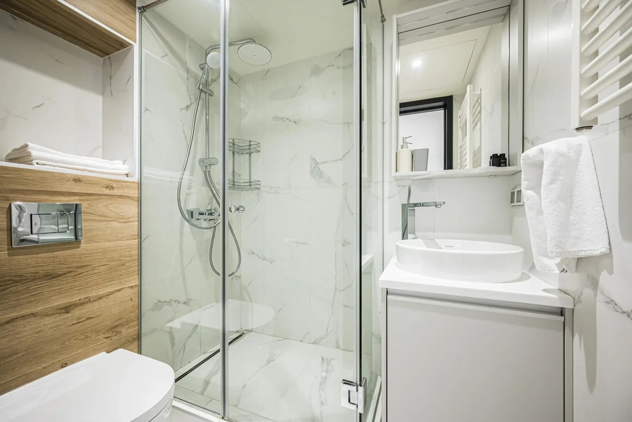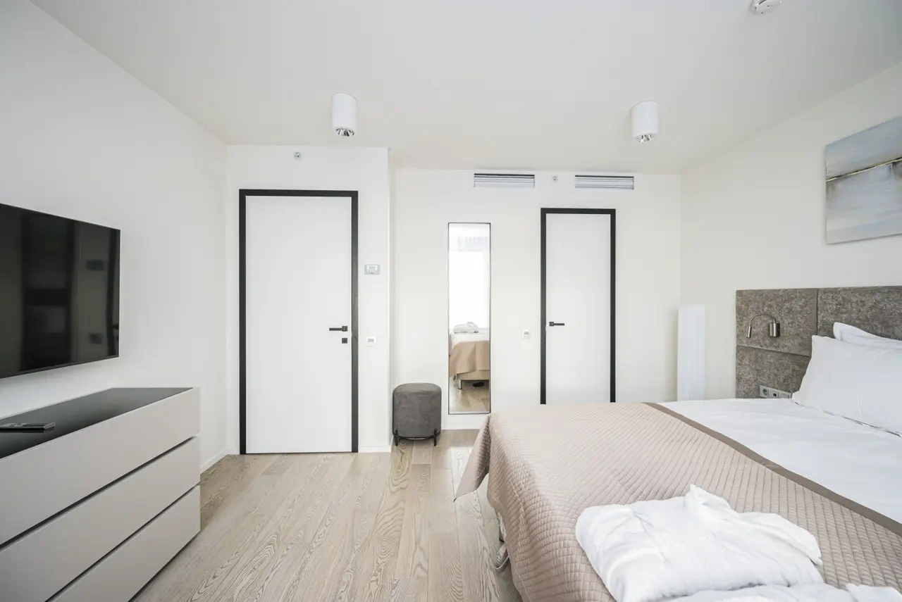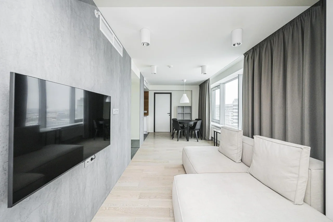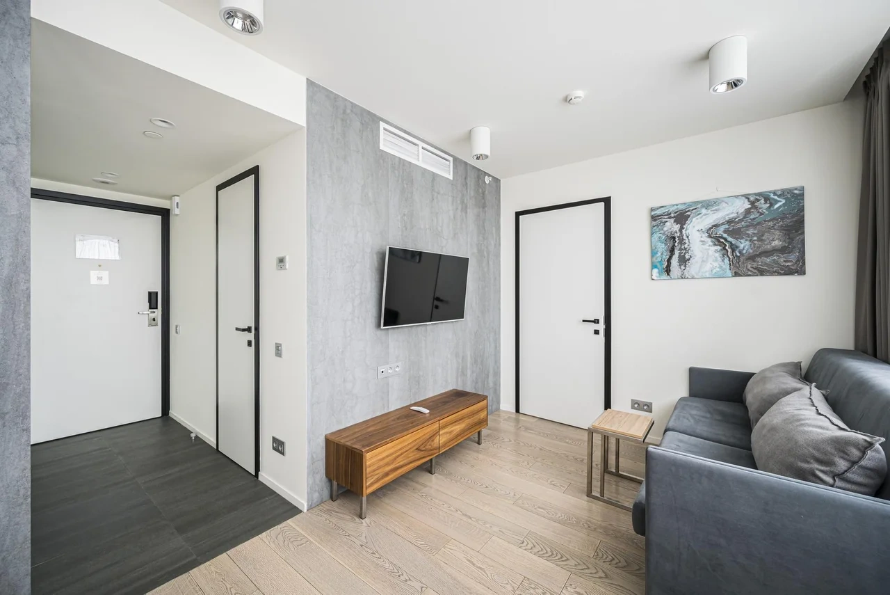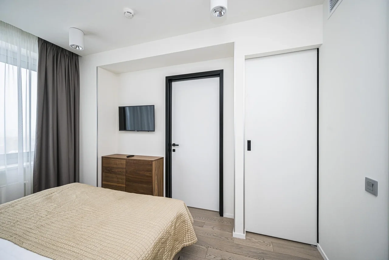 В числе удобств всех апартаментов — полностью оборудованная кухня со всеми приборами для приготовления и приема пищи, стиральная машина с сушкой, посудомоечная машина, встроенный питьевой фильтр. ТВ с иностранными каналами в каждой комнате, вай-фай, рабочее место, гардеробная, ванная, дополнительный с/у и шикарный вид с высокого этажа. По утрам гостям подают континентальный завтрак.