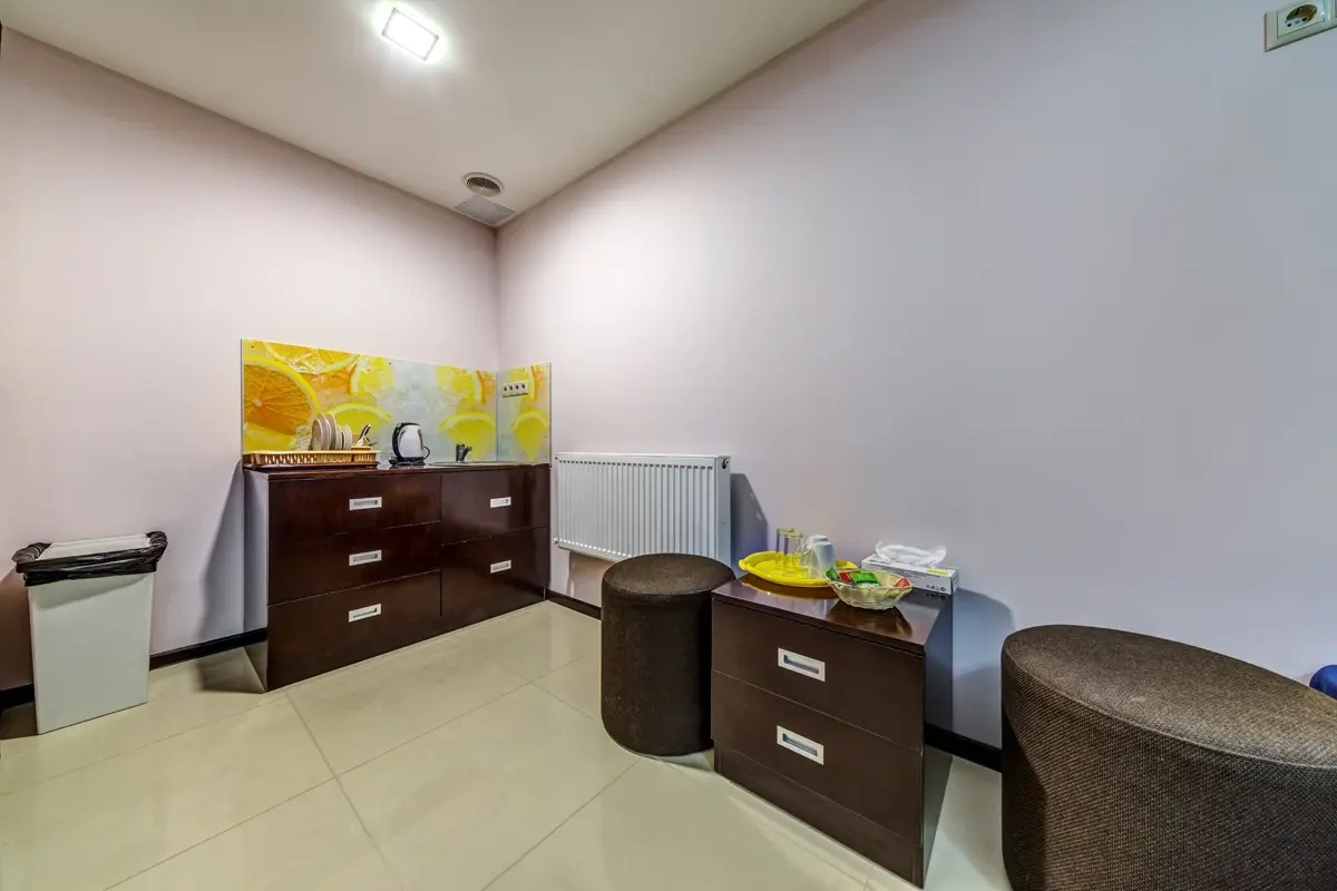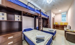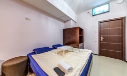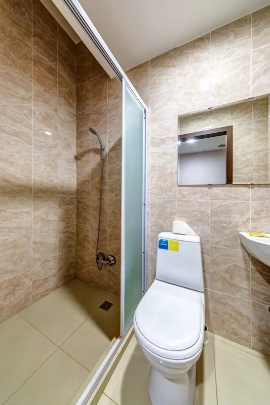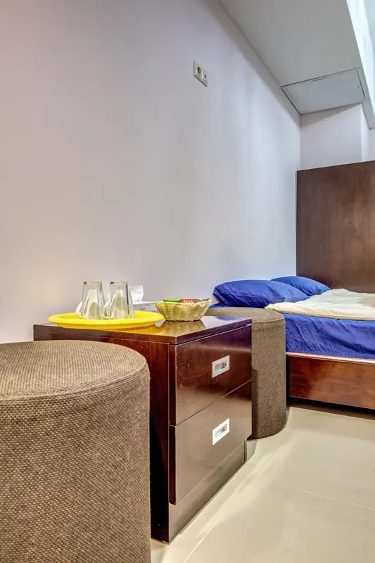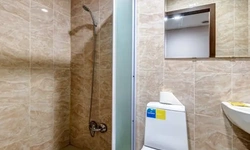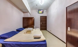 В номере царапанная мебель, один ящик был сломан. Плитка на полу со сколами. Из стены вынулась розетка. Ни одного стула в комнате, вместо стола - тумбочка. Чайник перестал работать на третий день нашего пребывания. В санузле крючок только в самой душевой. Куда девать одежду, непонятно. Диспенсер для мыла плохо работал. Туалетная бумага самого низкого качества.