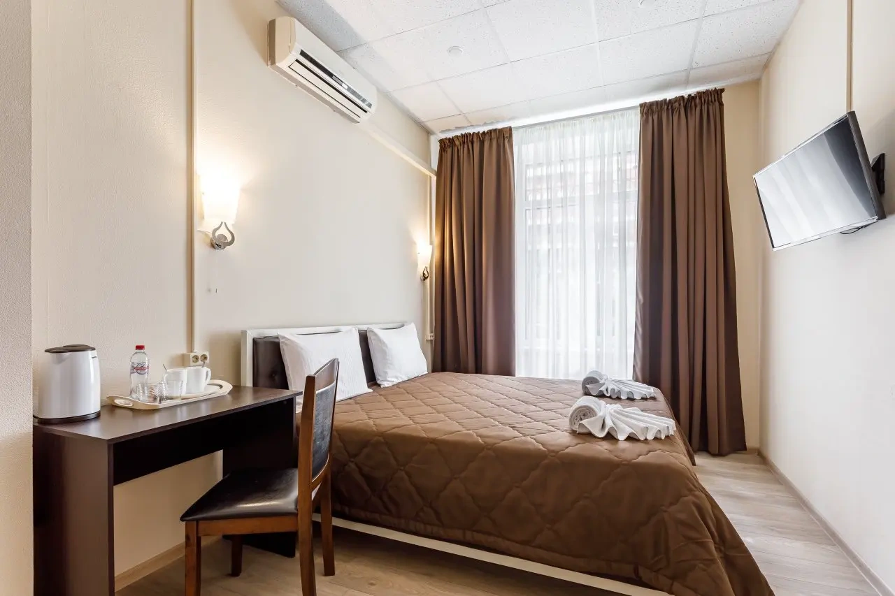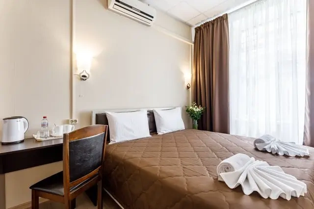 Очень хороший отель.Находится в самом центре ,рядом метро ,магазины,кафе.Чистые,просторные номера, есть холодильник и чайник