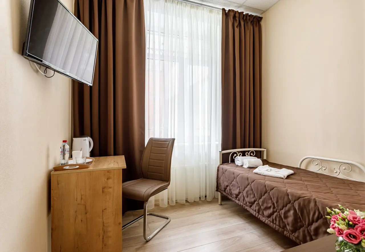 Прекрасное соотношение цены и качества. Нам нужно было переночевать рядом с институтом Вишневского. До него пешком пять минут. В отеле по-простому опрятно, есть кофемашина и микроволновка. В соседнем доме пятёрочка и отличная кофейня DanDi Coffee. Приехали за три часа до заселения, но нас тут же заселили. Спасибо!