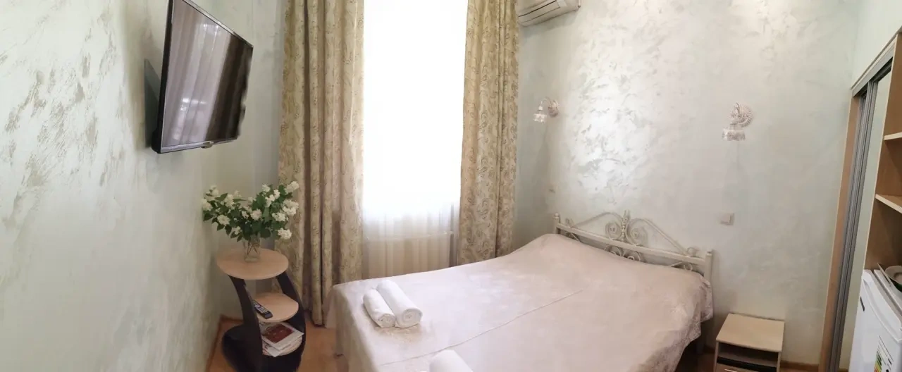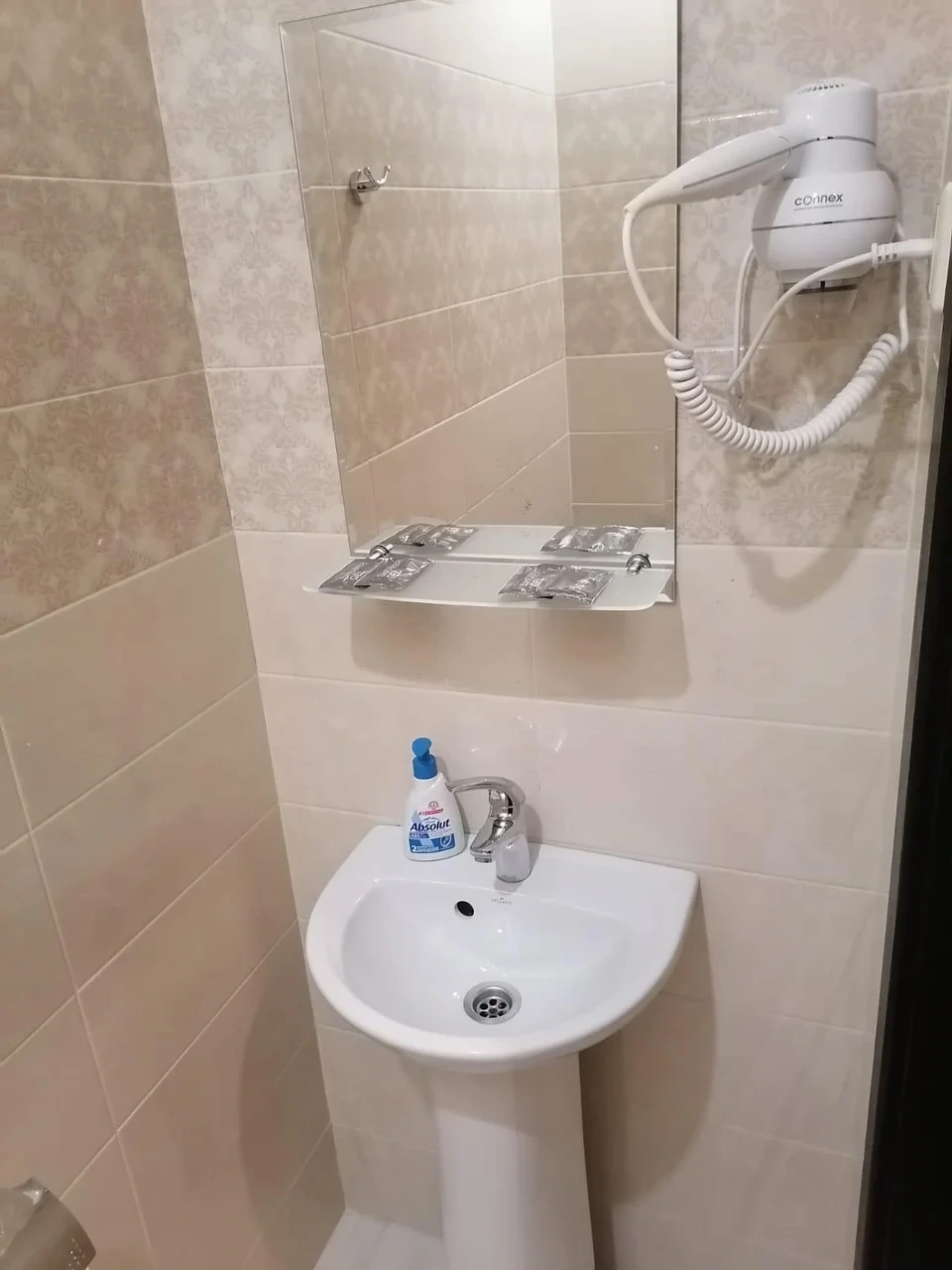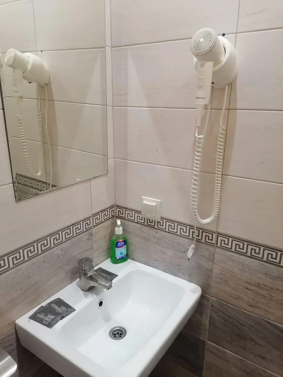 Требуется ремонт душевой кабины (лейка забита известковым налетом, неисправны направляющие дверей душевой кабины, текут уплотнения). Матрас продавлен, кровать скрипела. На диаане следы прошлых гостей. Волосы по полу в момент заезда, и потом никуда не девались. Качество уборки оставляет желать лучшего, в том числе и сантехника не моется. Полотенца старые и не простиранные. Вентиляция в ванной комнате не работает. Очень душно в номере.