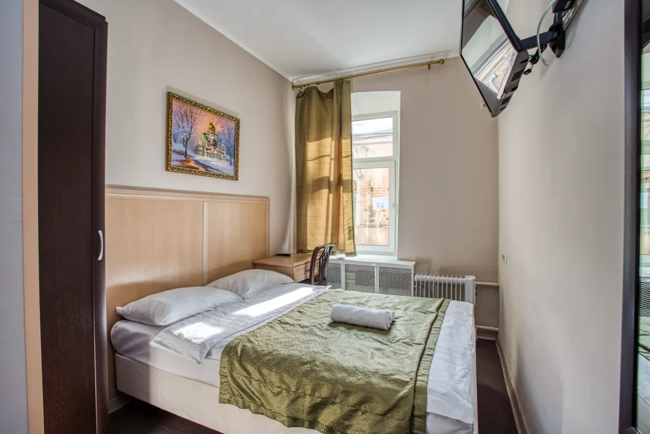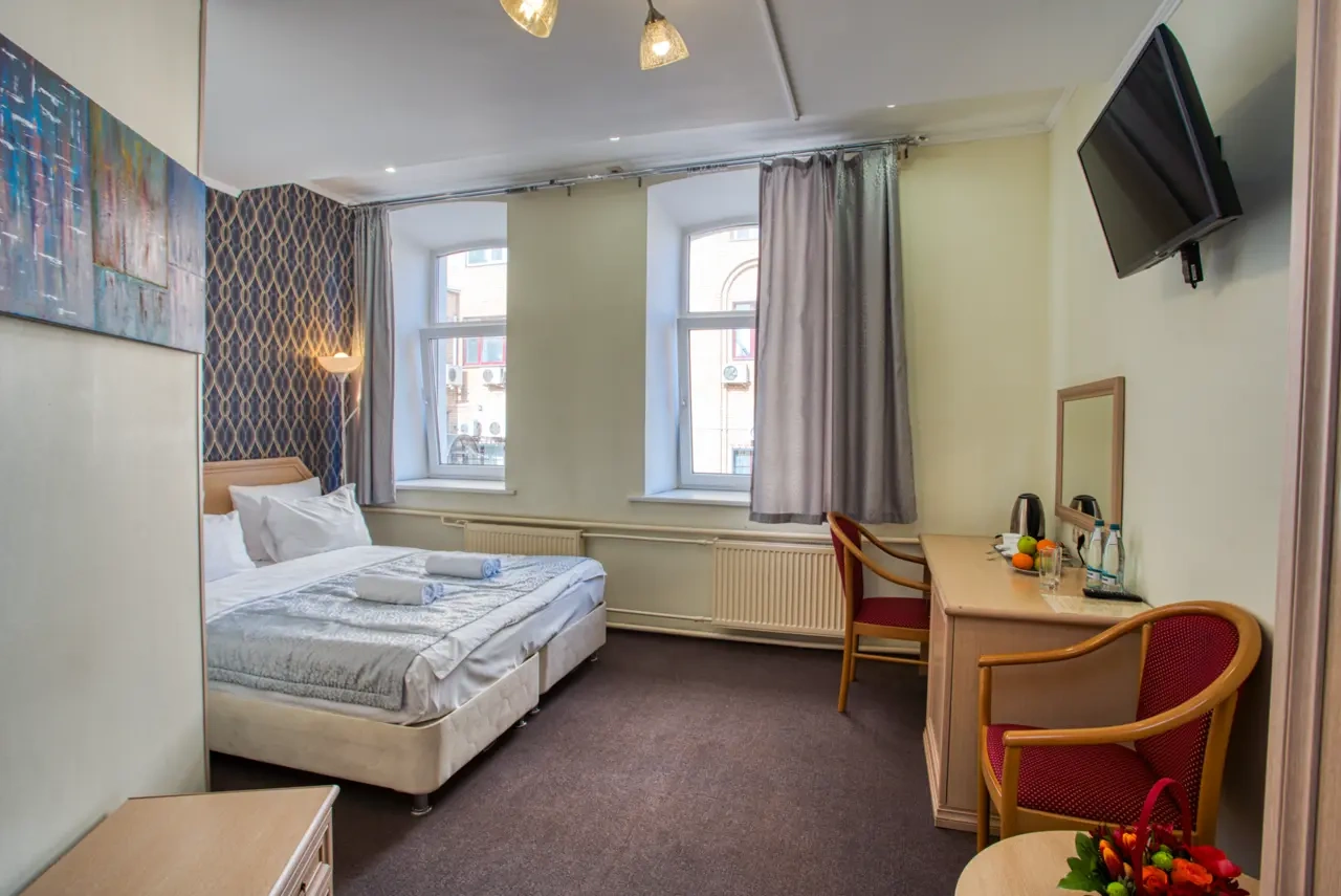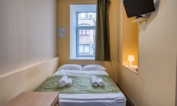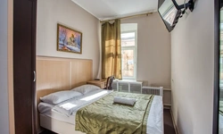 Оставались в отеле на отдых на пару дней, каждый день была замена использованного полотенца, мусора, в номере был фен, душевая кабина, была горячая и холодная вода, кровать, работающий телевизор, небольшой столик и шкаф, в фойе был кулер с холодной и горячей водой, чай, кофе, сахар, чистая микроволновая печь, утюг, небольшой номер с окном, цена очень хорошая. Возле отеля находится много кафе, ресторанов где можно покушать, Красная площадь, близко расположено метро - цветный бульвар, единственным минусом было то, что трудно было найти отель, нет никакой вывески указателя на него, будем приезжать снова.