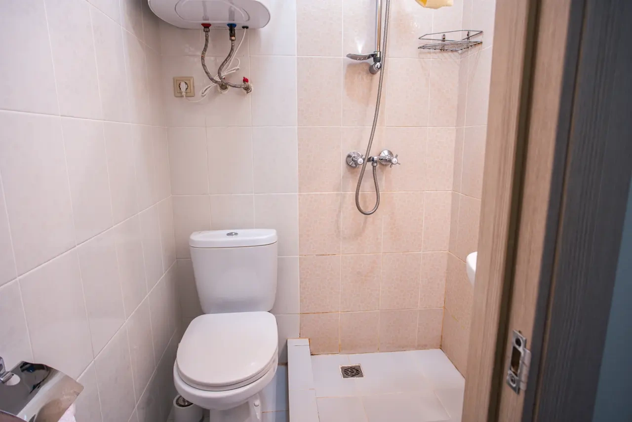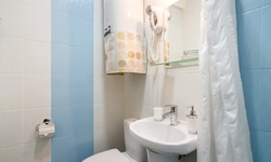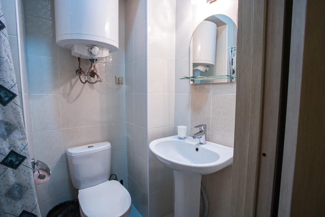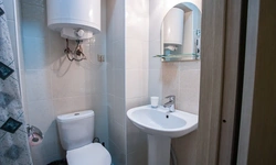 В номере стоит болер для нагрева воды,искупаться воды для одного человека достаточно,но если вы любите постоять под горячим душем,то увы не получится.