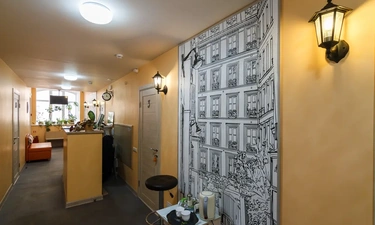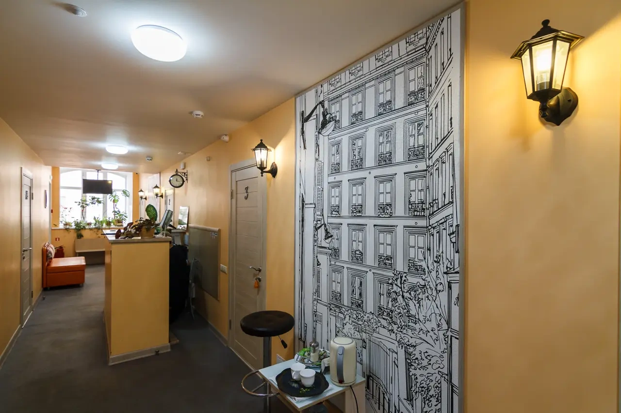 Удобное расположение до центра пешком можно прогуляться по красивым улицам за 20мин, уютная комната, чисто, тихо, комфортно. В номере есть фен, по два полотенца, шампунь, мыло... Кулер и микроволновка на этаже.