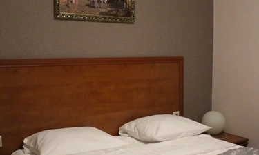 Номер был очень холодный и грязный. Все стены и матрас в пятнах, телевизор висит сбоку, смотреть неудобно. Тапочки выдали только по запросу. Халата и вовсе не оказалось.