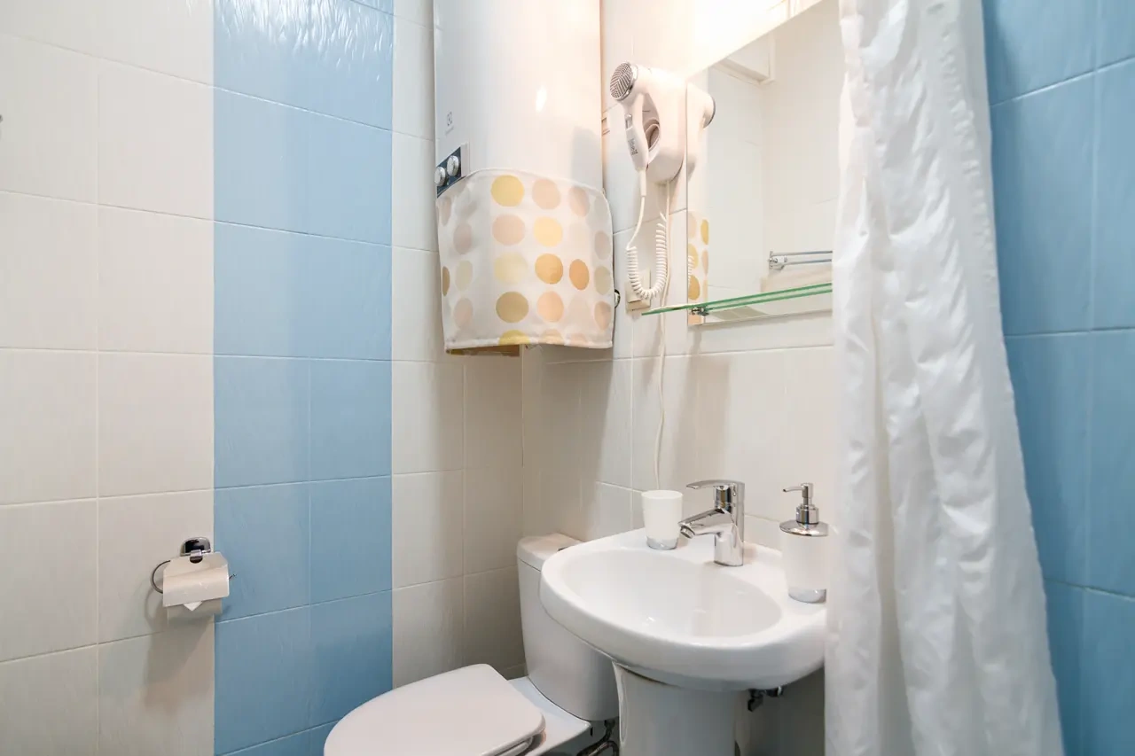 Всё отлично. Однако стоило бы менять полотенца каждый день. Из-за того, что санузел маленький, они просто не успевают сохнуть.
