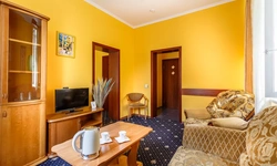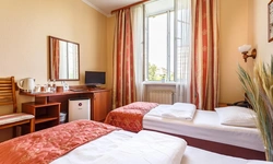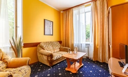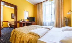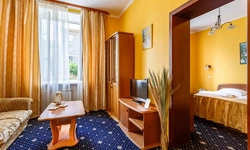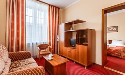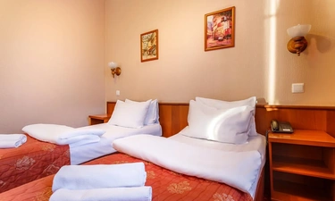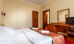 Номер изрядно изношен . Ковролин в пятнах, на стенах пятна . На вентиляции в ванной грязь так вообще свисает. Стул так весь в пятнах. Вообще в целом номер грязный . Указан красивый вид - зачем вводить в заблуждение (на будущее соседняя панелька и деревья это не красивый вид). Шторы явно меньше по размерам чем сами окна. Номер на 4 этаже - лифт не работает и конечно же никто об этом не предупредил. Прожжённое покрывало , забытая бутылка пива в холодильнике. Из мелочей - нет доводчиков на шкафе, разные лампочки, а где то и вовсе не горят. Один пакетик геля для душа и шампуни на 2 дня! Мыло какое-то неприятное (по ощущением лежало оно уже очень давно где-то). Подушки давно пора заменить (они очень тонкие), вечером в общем коридоре и на лестничной площадке света нет. Итог иметь такую гостиницу за 4к в сутки в Москве на ВДНХ это стыдно . Ощущение дешевой поселковой гостиницы.