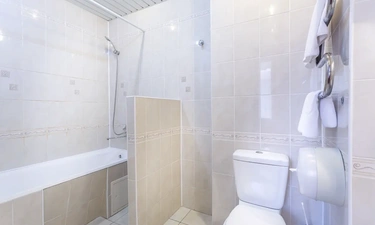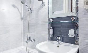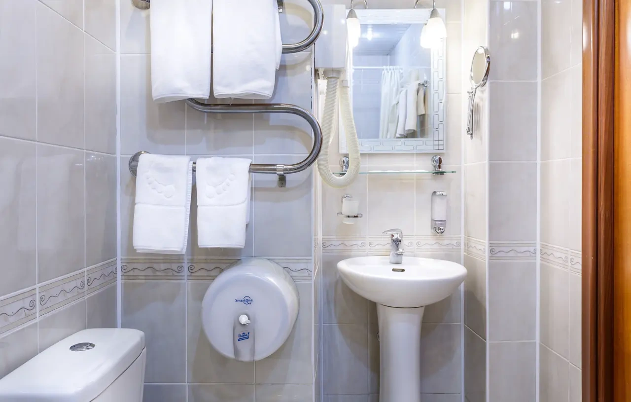 Номер абсолютно не совпадает с описанием и фотографиями - нет чайника, нет минихолодильника. В ванной не было полотенцесушителя, душевая кабина протекала. Санузел очень маленький, к раковине было не подойти из-за унитаза посередине ???? Вода еле текла, очень слабый напор, душ было принять сложно. Полотенца старые, но чистые.