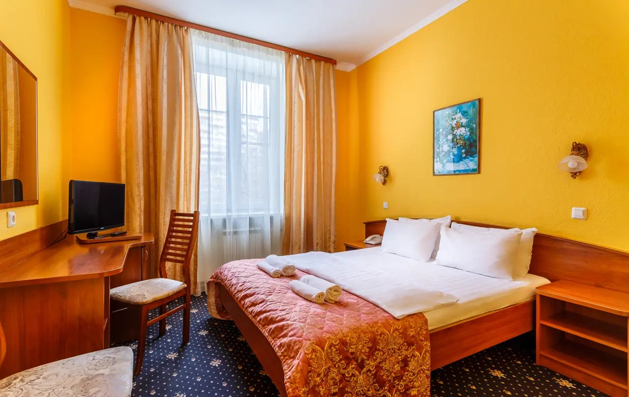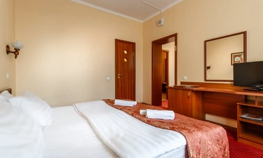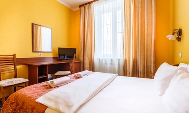 Номер был просто ужасный! Пропахнувшая накидка на кровать пахла остатками табака. Вздутая ДСП мебели придает номеру негативные впечатления, но это в целом нестрашно с тем, что был неисправен датчик оповещения, который без перерыва издавал громкие, монотонные звуки целую ночь. Переселять в другой номер отказались, так как якобы не было свободных номеров. Еще могу указать на нано туалетную бумагу, которую надо сложить в 10 слоев, чтобы она перестала быть прозрачной.