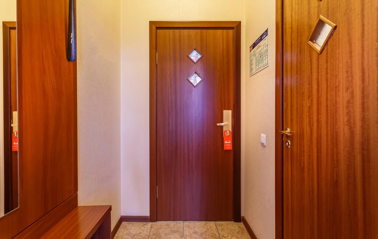 к сожалению, из ванной комнаты без борьбы выбраться невозможно. иногда стоишь по 5 минут и толкаешь дверь, просто, чтобы выйти. на замок можно не запираться, всё равно войти нереально. не знаю только нам так повезло или так во многих номерах. не было горячей воды. нас предупредили, но сказали, что вопрос решили, просто слейте немного воду и будет горячая. за 2 ночи горячей воды так и не появилось