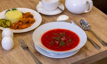 Удобно, что есть возможность поесть прямо в отеле. Еда простая, домашняя.