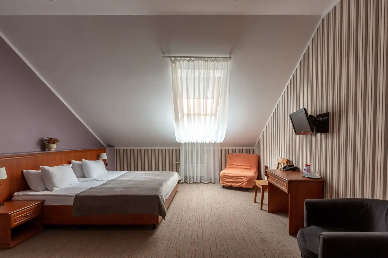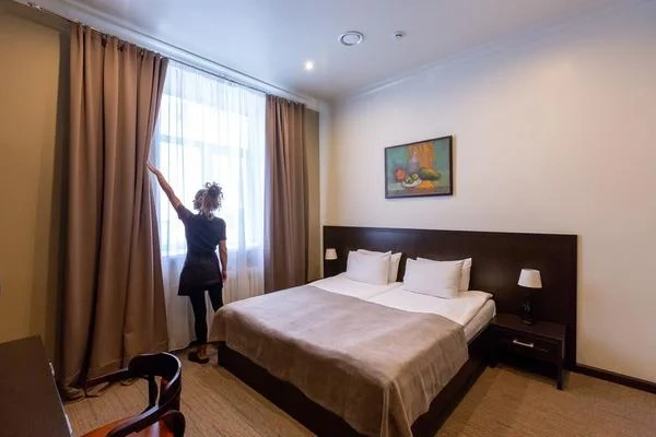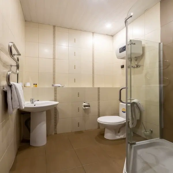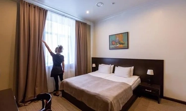 Администраторы были разными. Есть те, кто откликался на просьбы. Были те, кому гости абсолютно безразличны. Общий вид номера - чистая казарма, никакого уюта. Холодная вода в душе. Полотенце есть, а тапочек нет. Это вариант удобен при условии, что там только ночевать. Больше там находиться не хочется. Завтраки съедобные, но обыкновенные. Больше там останавливаться не будем. Еще нужна была ночь, мы переплатили 10 тысяч - но комфорт и отдых нашли в другом месте совсем иной. Жалею о том, что мы там остановились.