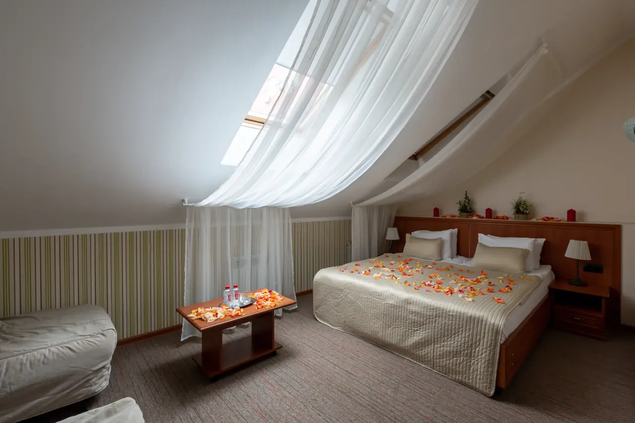 В номере было мансардное окно прямо над кроватью. Был сломан фиксатор, поэтому окно не закрывалось полностью. Предложили только обогреватель, но вопрос сквозняка прямо над кроватью это не решает. Октябрь на дворе. Пришлось просить знакомую провезти малярный скотч, чтобы закрыть щели. Болеть не хотелось.