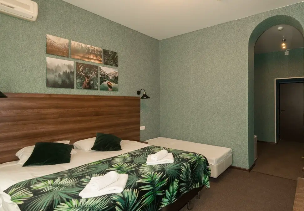 Две удобные кровати, брали номер на троих, отлично подошло! Всё чистое, аккуратное, всё работало без нареканий