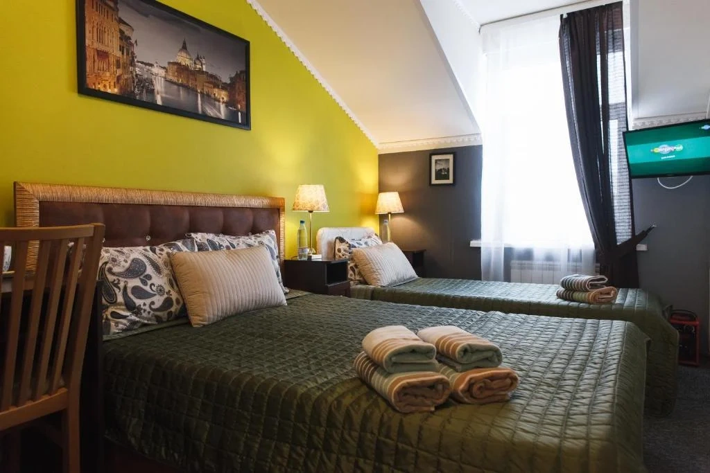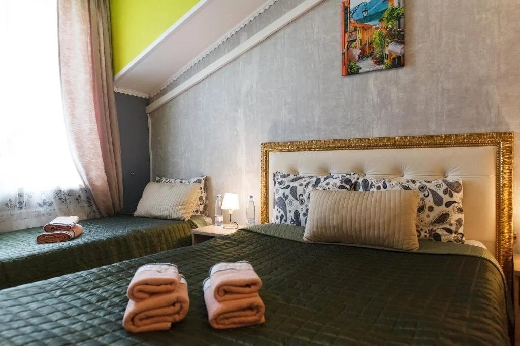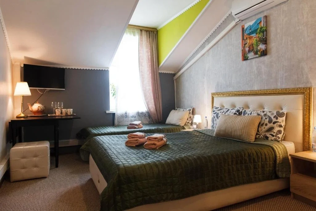 Уже не в первый раз в этом отеле, у самих свой небольшой отель в Самаре, поэтому понимаем эту, так сказать, стезю и любим отдыхать в небольших гостиницах, поддерживая малый бизнес! Жаль, что некоторые гости пишут несправедливые отзывы этому отличному месту только потому, что отель (во избежание,видимо, убытков не всегда возвращает деньги за 1 день). Мы уже были в трех разных номерах, они немного разные (есть в синих оттенках с фотографиями балерин на стене, есть зеленый, есть светлый, кажется,16, там еще Эйфелева башня на стене), но все чистые и симпатичные. Есть недочеты, например, нет бутилированной воды в номерах (но кулер в холле), нет холодильника (в двух комнатах из трех). Но в остальном расположение, персонал,все отлично. Ставим 10!