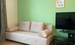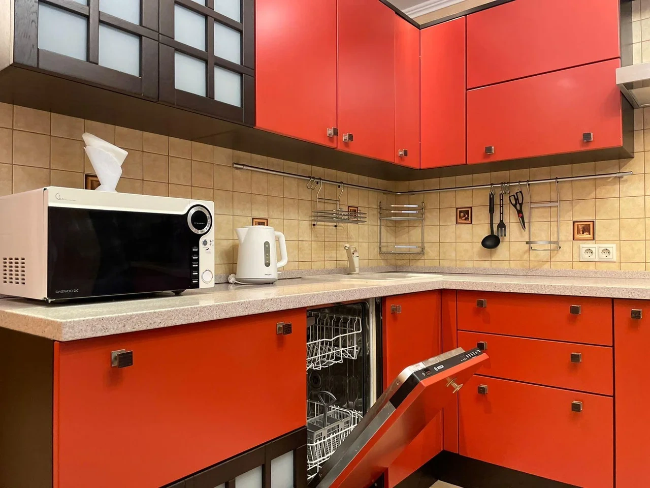 Квартира оснащена современной бытовой техникой (стиральная машина, утюг, телевизоры, фен, микроволновая печь, пылесос, кондиционер, Посудомоечная машина). В спальне мягкая, удобная кровать с ортопедическим матрасом, пушистым одеялом и подушками.