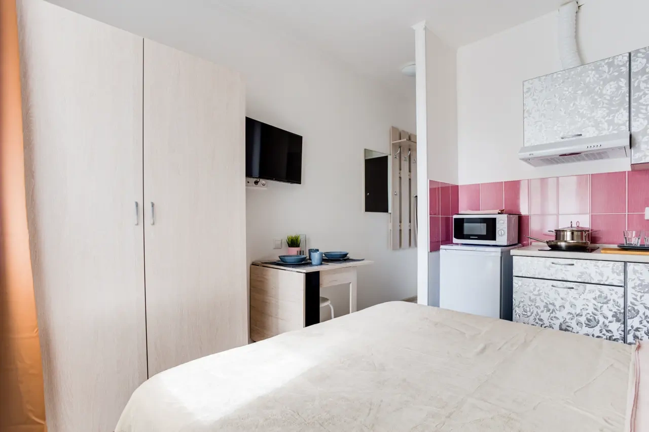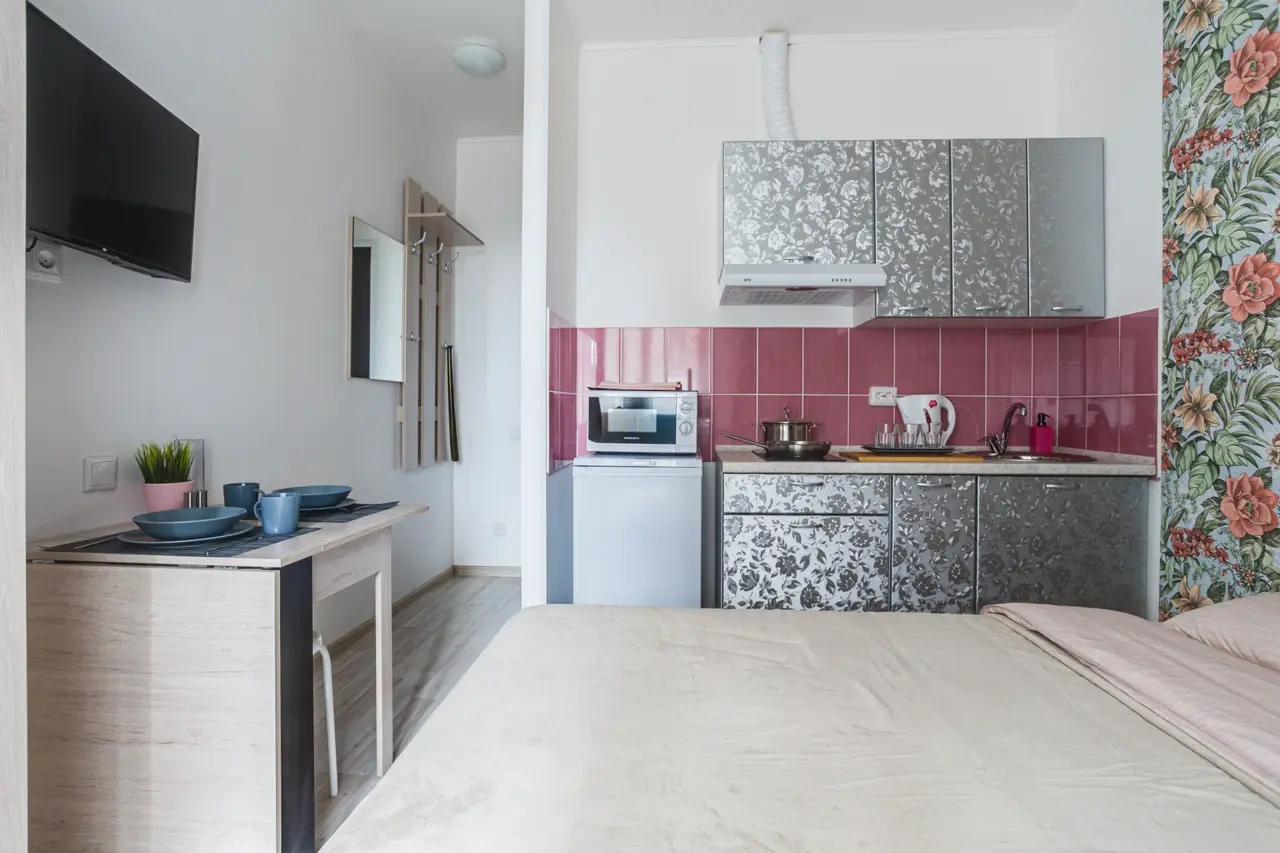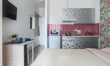 Заселение дистанционное ( бесконтактное ) Залог за сохранность имущества - 1000р., оплачивается переводом на карту менеджера перед заселением, возвращается в день выезда после 14:00. При заселении с питомцами: - Дополнительная оплата 500р. в сутки. Залог за сохранность имущества - 2000р., оплачивается переводом на карту менеджера перед заселением, возвращается в день выезда после 14:00. В НОВОГОДНИЕ ПРАЗДНИКИ, с 31 декабря по 9 января, страховой депозит (залог) берется в размере 100% от стоимости брони за сутки. Оплата бронирования, залога, а также за поздний заезд производится онлайн, непосредственно перед самим заселением. Курение запрещено. Уважаемые гости! Бронирование студии подразумевает, что Вы ознакомились с текстом объявления и согласны с условиями договора оферты.