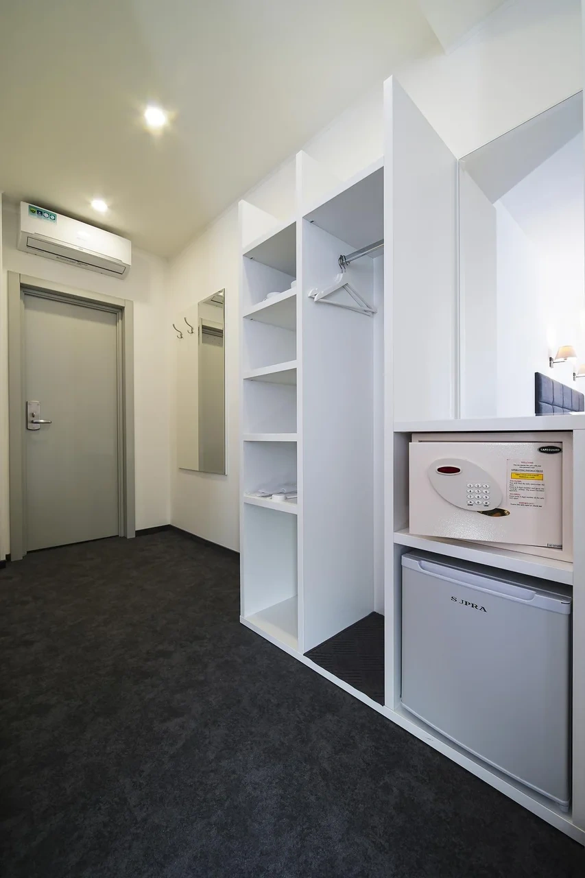 Номер категории «Супериор» – оптимальный вариант как для рабочей поездки или встречи с деловыми партнерами, так и для романтического отдыха. Номер "Супериор" - просторный и комфортный, с тщательно продуманным интерьером — здесь есть все, что может понадобиться вам во время отдыха. Площадь номера составляет 18 м². Он оборудован удобной кроватью с мягким матрасом и свежим постельным бельем, где вы сможете отдохнуть после насыщенного дня. В номере - рабочая зона с удобным письменным столом и стулом. Для вашего удобства в номере "Супериор" есть телевизор с широким выбором каналов, чтобы вы могли насладиться своими любимыми программами или фильмами. Также есть высокоскоростной Wi-Fi, мини холодильник, индивидуальный сейф для ценных вещей и документов. В собственной ванной комнате с душем вы найдете все необходимые туалетно-косметические принадлежности, включая полотенца, шампунь, гель для душа, мыло и фен. Номера категории "Супериор" предлагают пространство, где вы сможете отдохнуть и расслабиться после долгого дня. Они идеально подходят для комфортного отдыха во время туристической или деловой поездки в столицу.