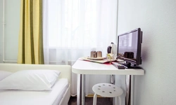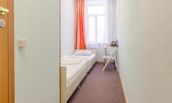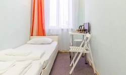 в номере кровать и узкая щель между кроватью и стеной.телевизор не работает. душ такой тесный что туда еле можно зайти. и главное. тут вообще невозможно спать!. ацкая слышимость. сначала соседи храпели, я очень хотела спать и пыталась спать. но потом они выспались и стали ходить,шуметь., все ужасно слышно.только заснешь и тебя сразу будят. администратор хамит и говорит" что я хочу".