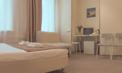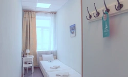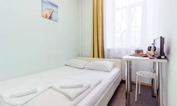 Номер очень маленький, двоим людям даже разойтись негде. Один единственный плюс, это был душ и туалет в номере. Стены сделаны из гипсокартона, слышимость невероятная. Мебель вообще вся старая, люди вам платят деньги, можно же мебель поменять!!! Стены вообще побелены, вся одежда что висела на вешалке, вся белая!!! 3 звезды ставлю только за то, что рядом метро, и ванная в номере