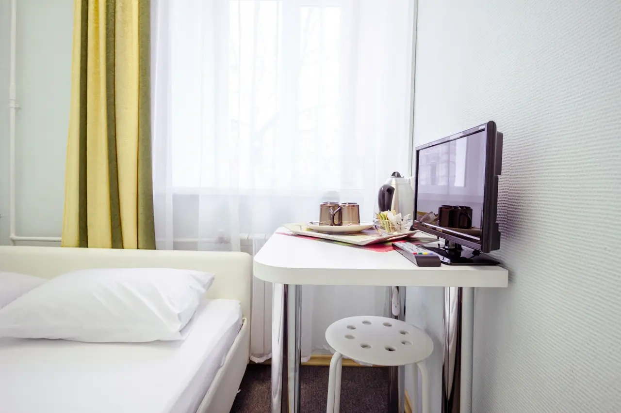 Регистрируют быстро, отличное месторасположение, главные для меня удобства есть: душ, чайник, холодильник, минимум посуды, хороший интернет (свой для каждого этажа, в меня даже во дворе ловил с 4-го). Номер во многом уставший, но даже сама компоновка как бы намекает, что сюда едут с целью бросить вещи и переночевать. Никакого шума от соседей не слышал - смотря какие соседи попадутся, это да. По формуле "цена - качество" рекомендую всем, кто в отеле только ночует