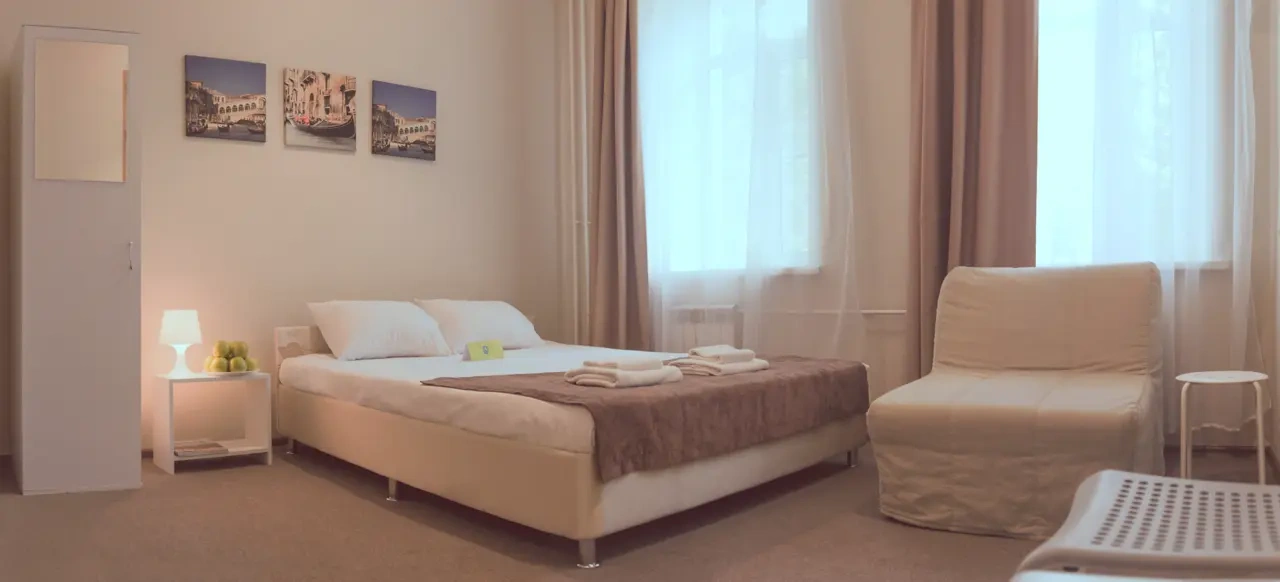 Оптимальное соотношение цены и качества предлагает Агиос-отель - один из лучших бюджетных отелей Москвы, недорогой, в центре города: в трехстах метрах от метро и в полукилометре от ж/д вокзала. Агиос-отель предлагает самые демократичные цены для комфортабельной гостиницы с идеальной транспортной доступностью. Это тот случай, когда Вы получаете полноценный уютный номер в отеле в Москве недорого (цена от 2000 рублей за стандартный одноместный номер или 2200 за двухместный).