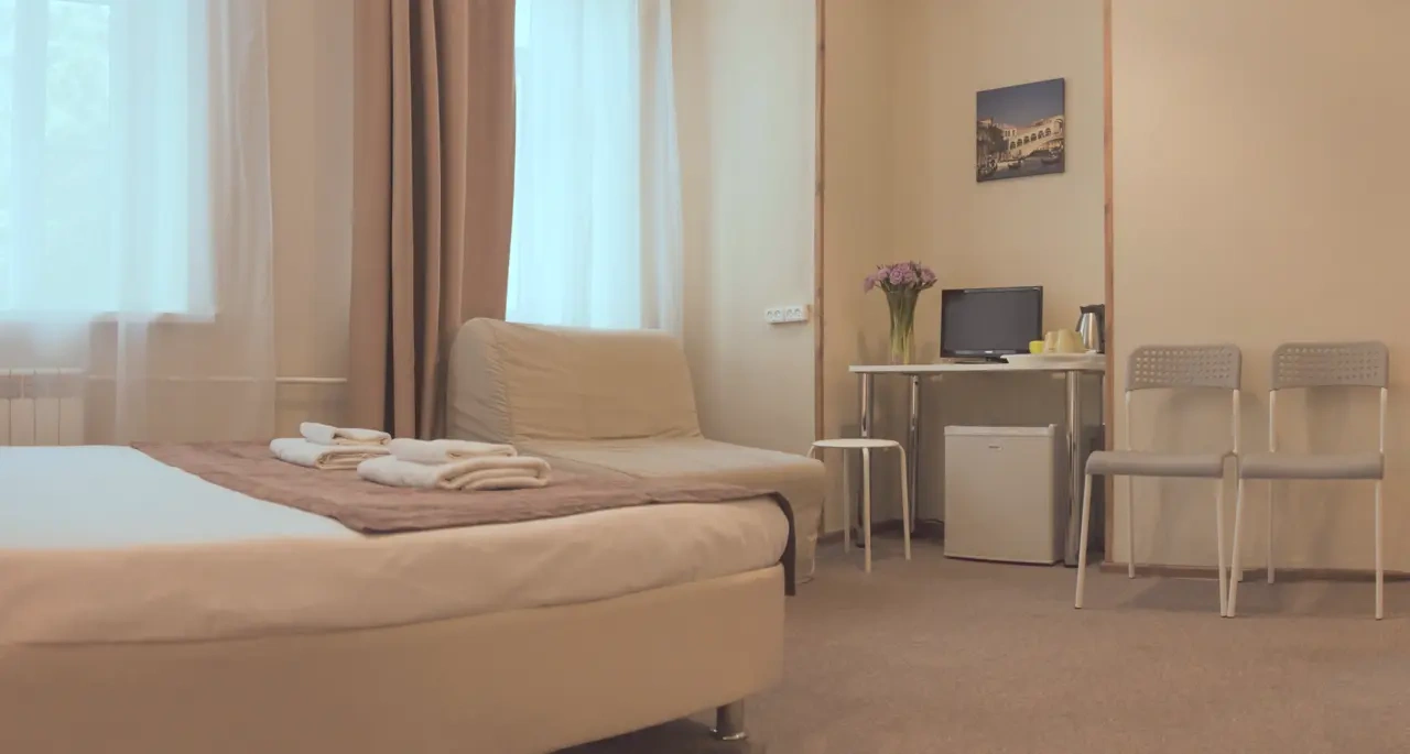 Хорошее соотношение цена-качество, полноценный номер со своей ванной с видом на храм, чисто, тихо, центр, круглосуточный заезд