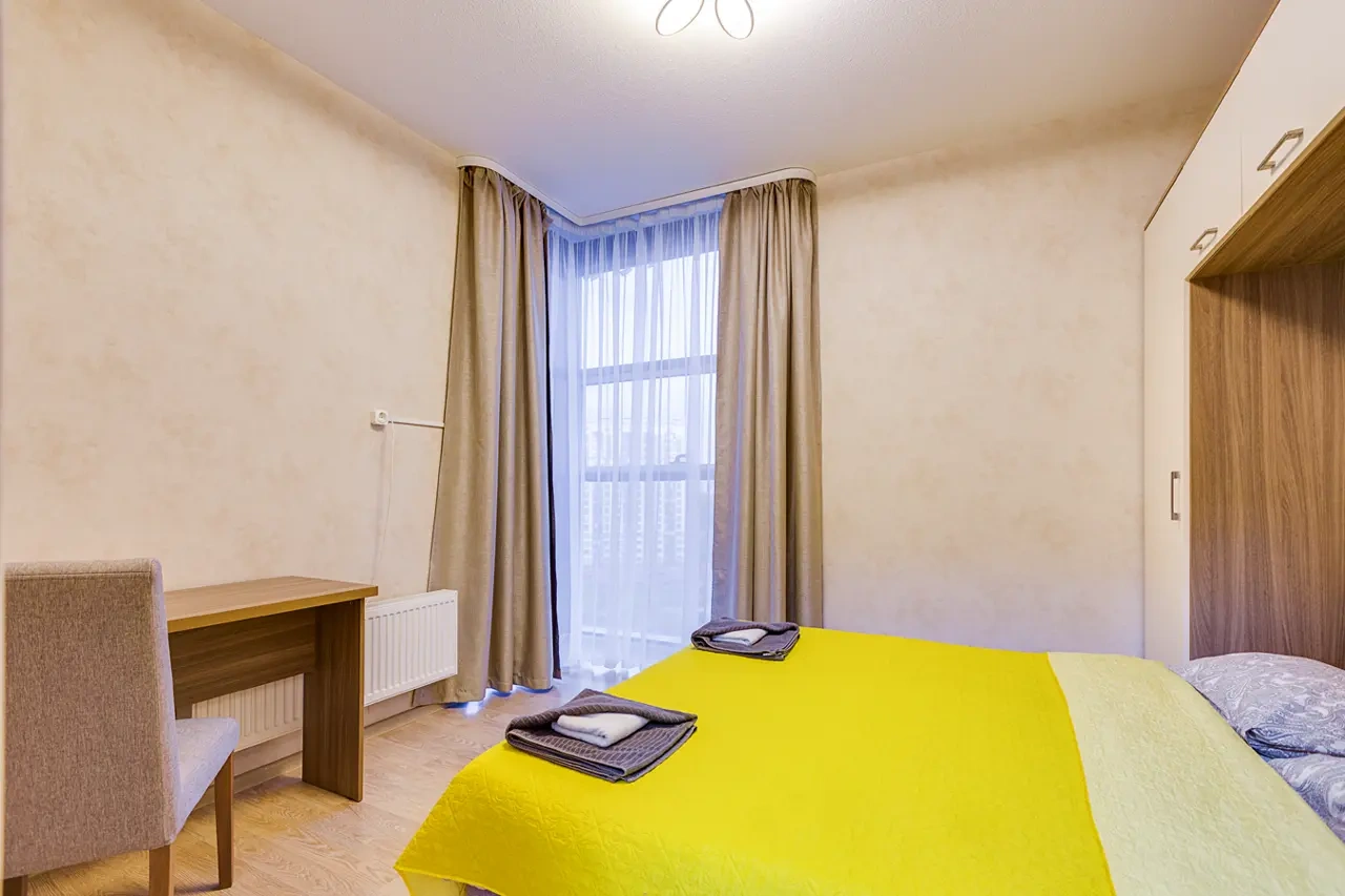 Гости рекомендуют Апарт-Отель Salut-11: Апартаменты посуточно на Пулковском шоссе 14Е в Парке городов героев. 15 минут на машине до центра города, 12 минут пешком до метро, 10 минут до аэропорта. Рядом супер-маркет 24 часа, Пятёрочка, Магнит, Магнит-косметик, салон красоты, рестораны. Вся новая мебель, вся новая техника (стиральная машина, электроплита с вытяжкой и подсветкой, холодильник, чайник, фен, утюг, телевизор, микроволновая печь) Двуспальная кровать или две раздельных односпальных. Охрана комплекса 24 в сутки, видео наблюдение, ресепшен. Во всех номерах Wi-Fi, постельное бельё и полотенца. Никаких дополнительных скрытых платежей. Запрещено курение, проведение вечеринок, пьянок. Проживание любых видов животных. Тихие часы с 22.00 до 9.00 Заезд с 14.00 выезд до 12.00 Работаем с организациями, принимаем до ста человек.
