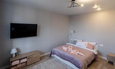 - 4 спальных места ( двуспальная кровать, двуспальный диван )