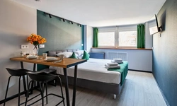 Добротная гостиница, снимал тут апартаменты на неделю в конце прошлого года. Отмечу уютный номер, в нем было все необходимое для проживания, белье было новое, что очень меня порадовало. Наличие мини-холодильника и кухни еще существенные для меня плюсы. В общем остался доволен, теперь если что, то знаю где остановиться.