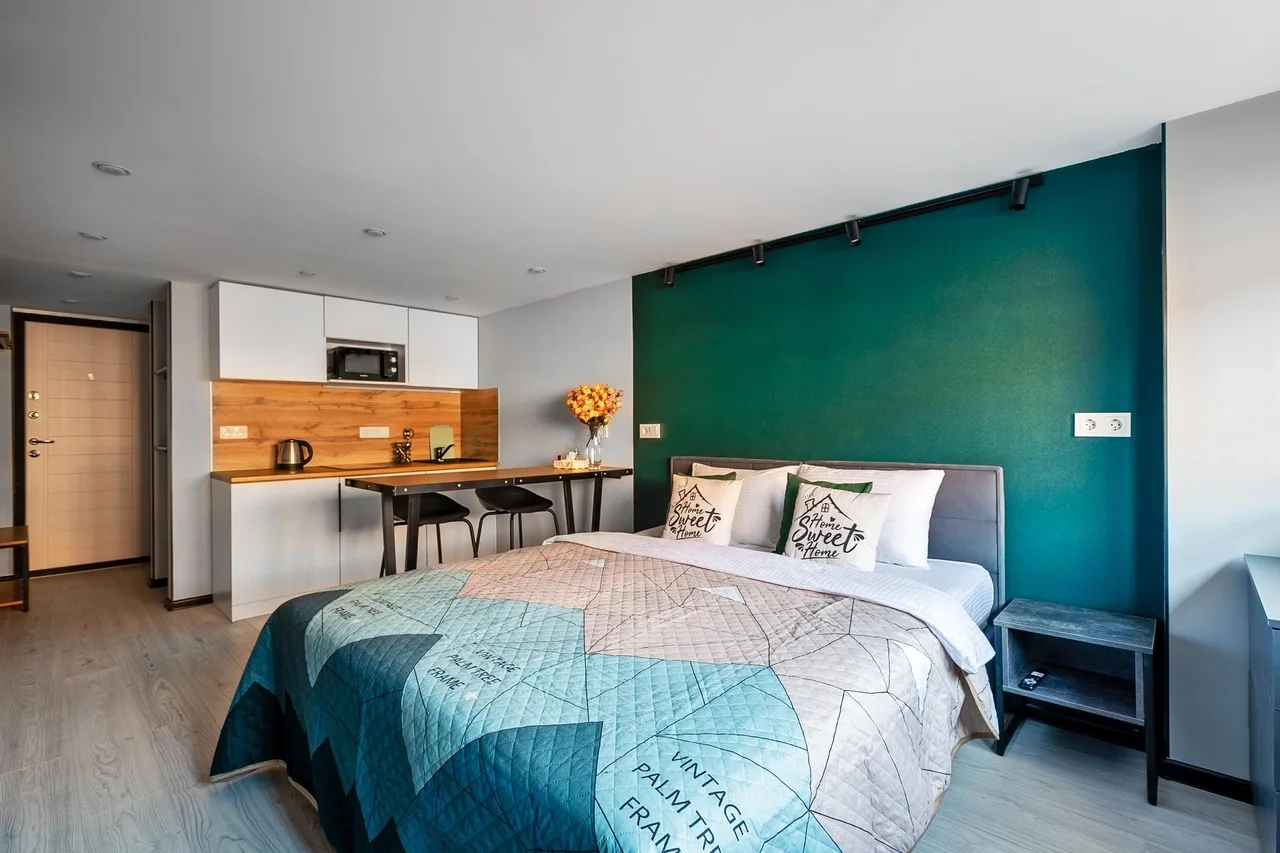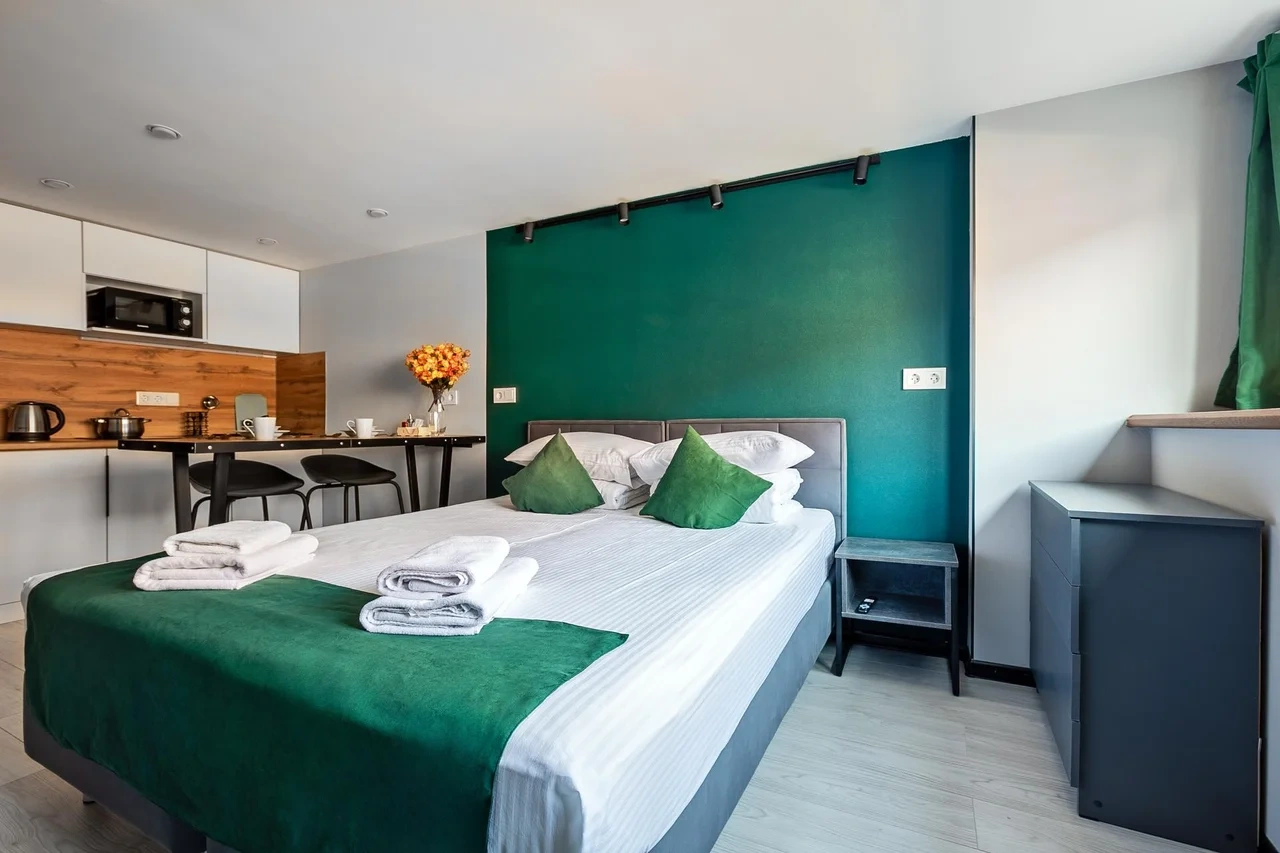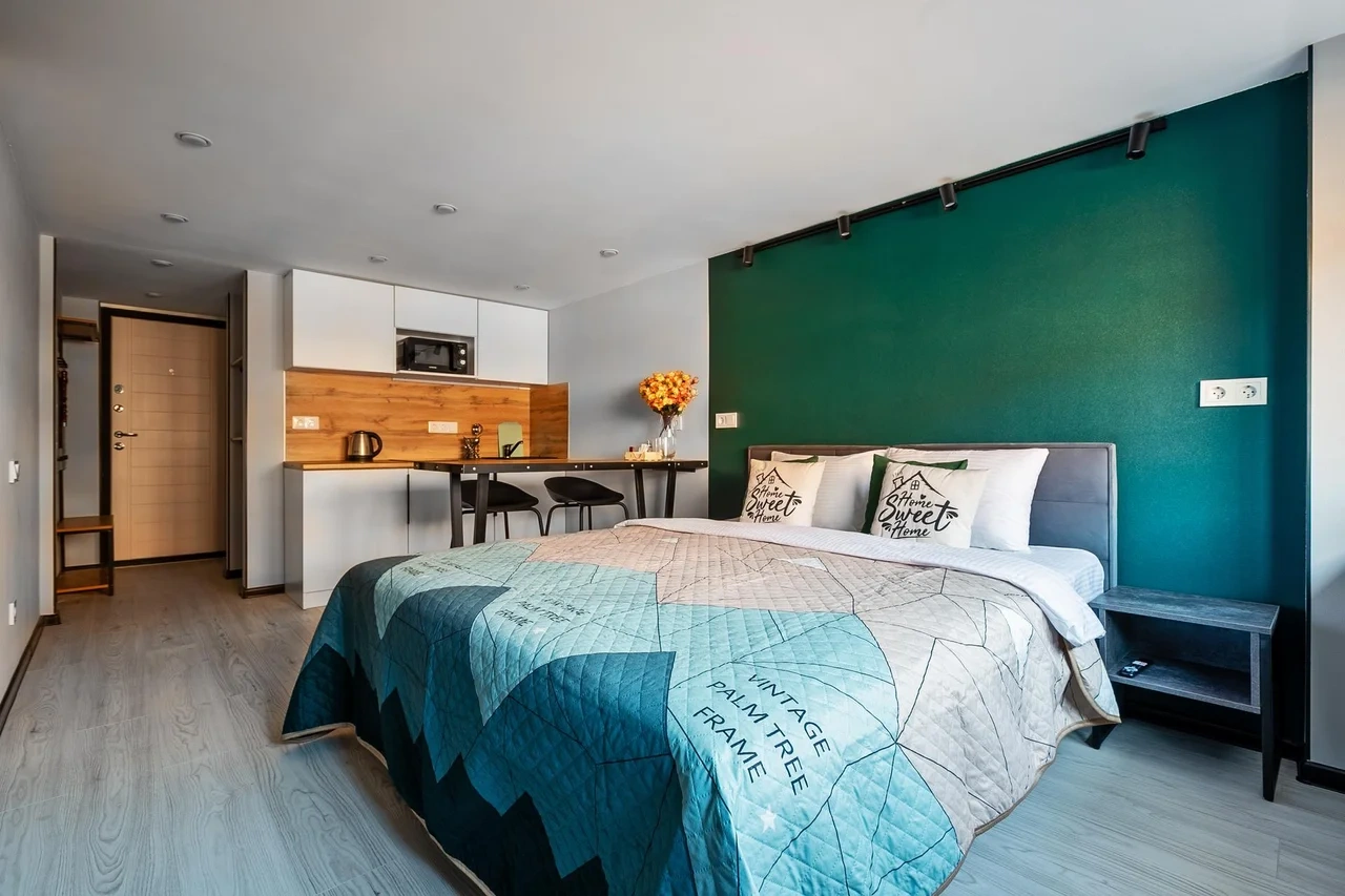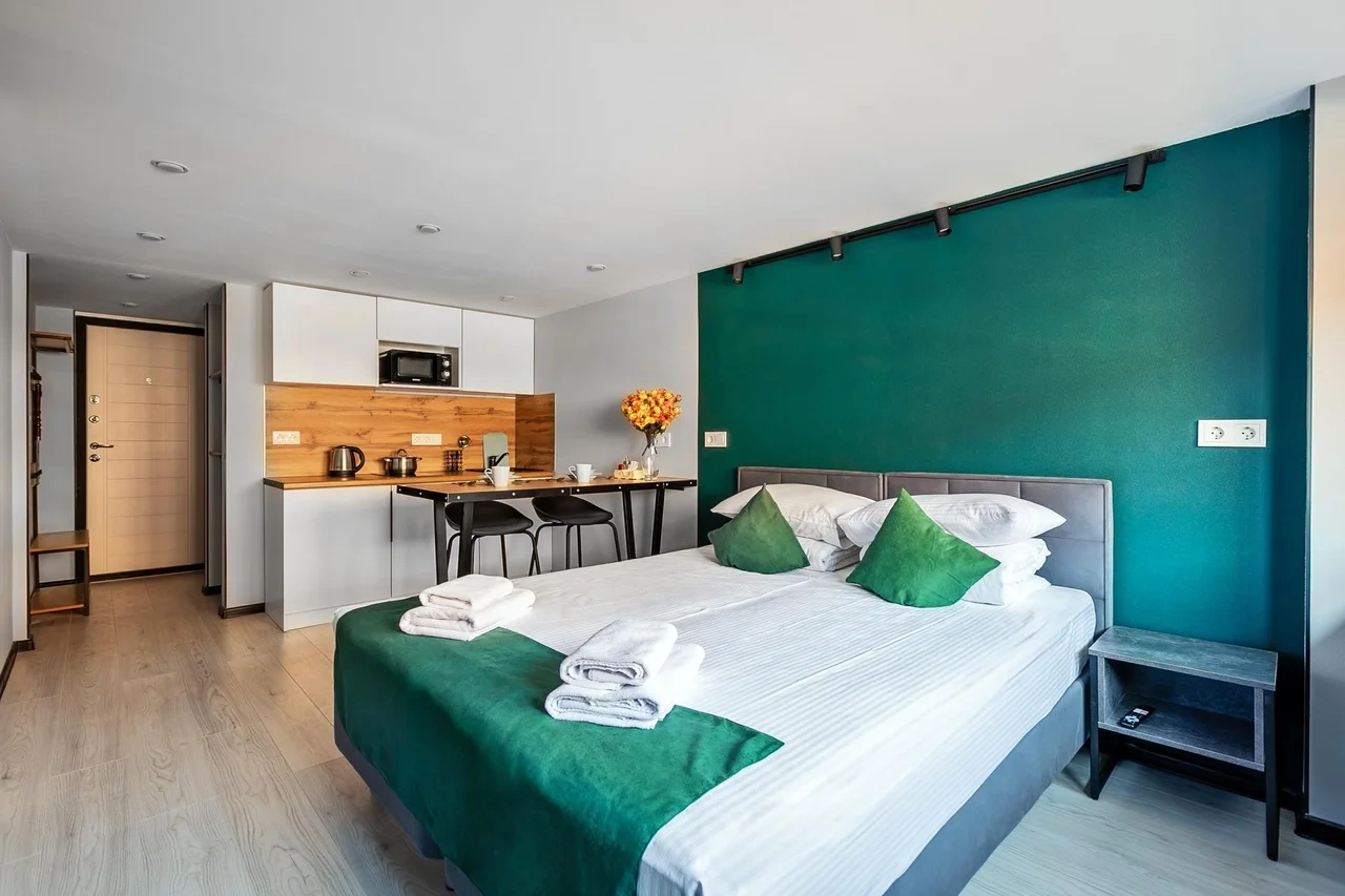 Выбрали эти апартаменты именно из-за расположение, удобно, рядом метро. Номер просторный, со своей кухней и техникой, чистый и комфортный даже для длительного пребывания. Отдельное спасибо администратору, приветливо встретил и заселил, любую проблему можно было решить круглосуточно.