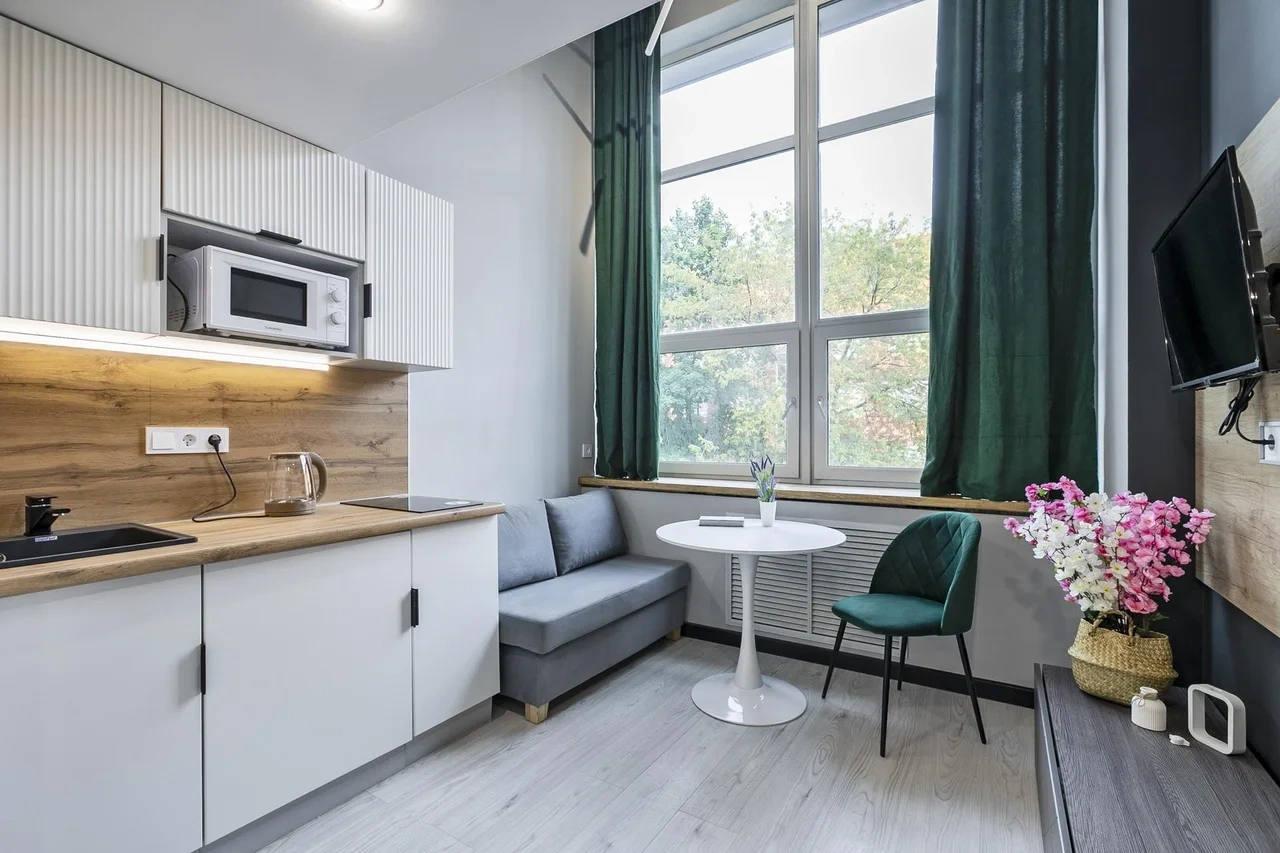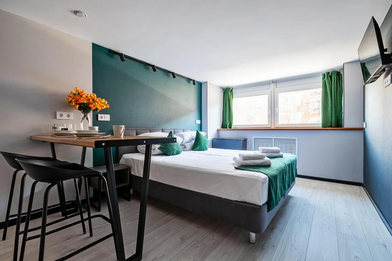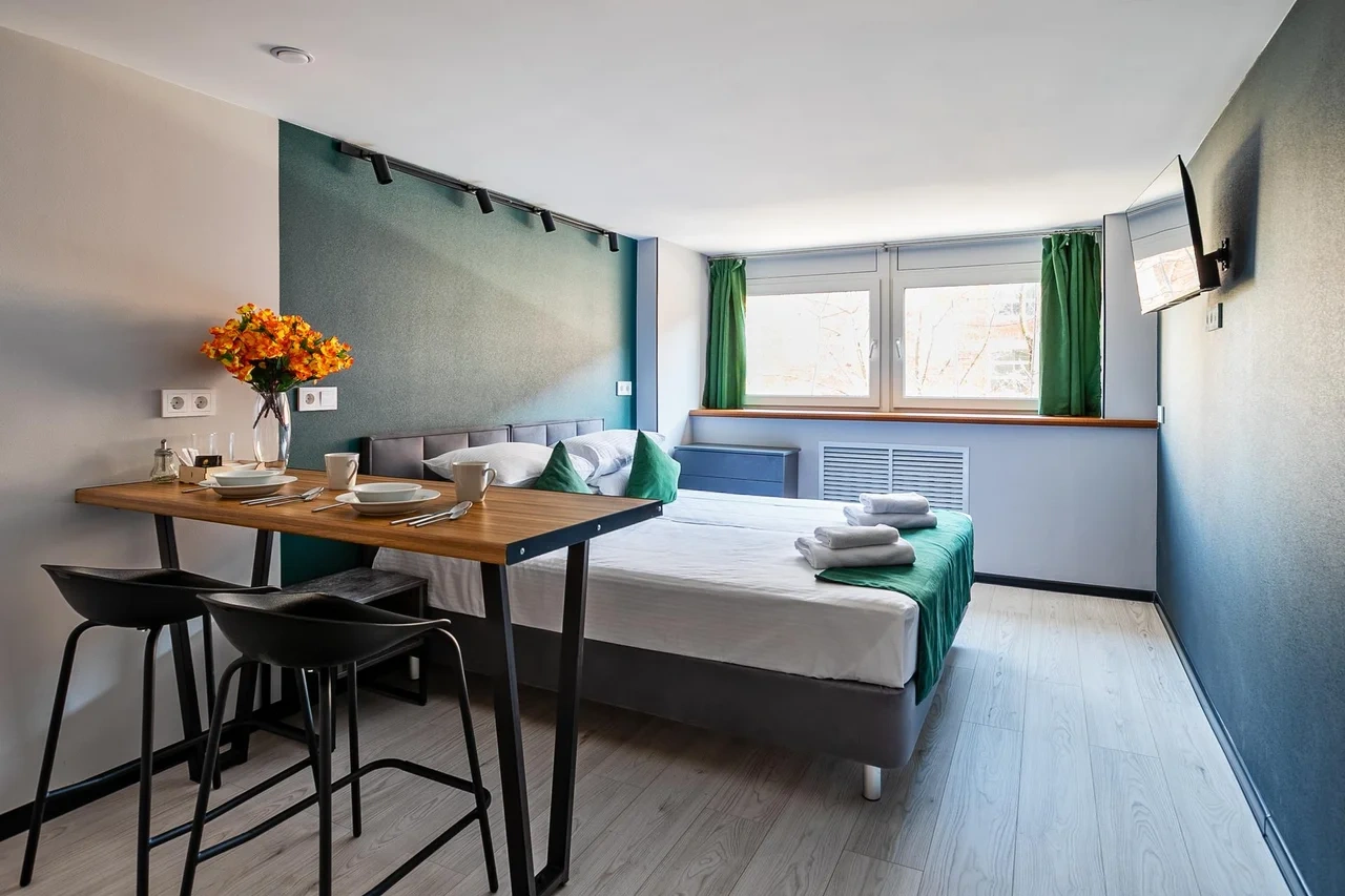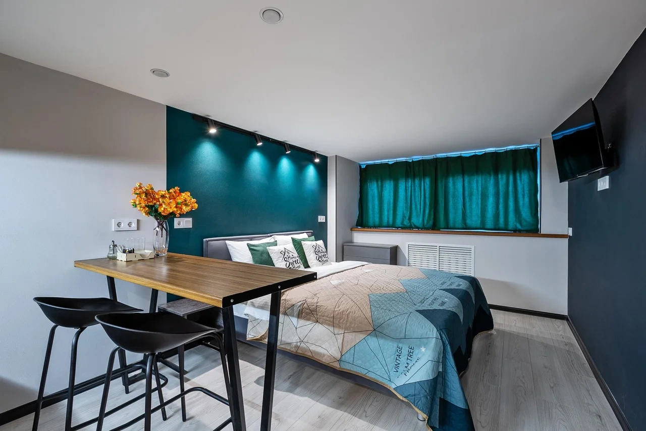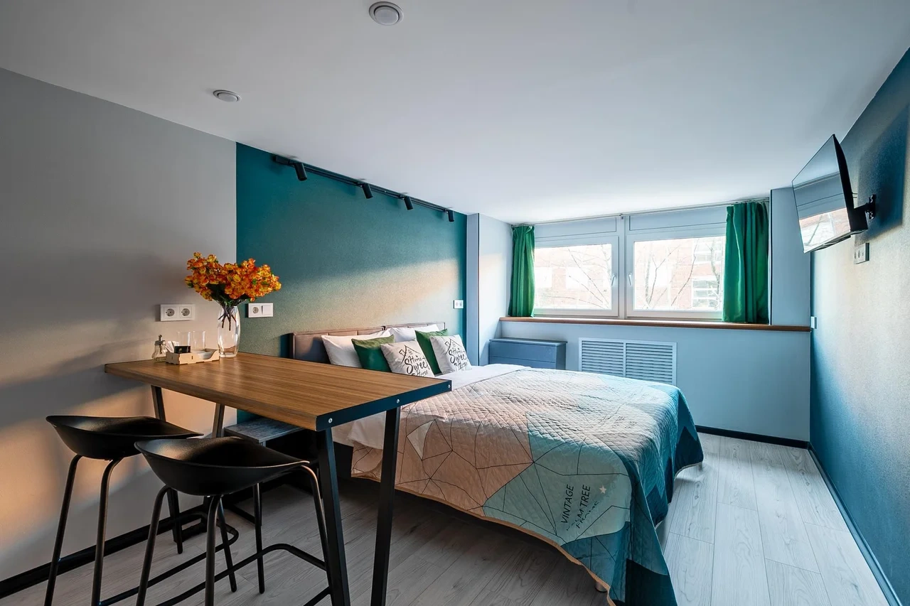 Выбрали эти апартаменты именно из-за расположение, удобно, рядом метро. Номер просторный, со своей кухней и техникой, чистый и комфортный даже для длительного пребывания. Отдельное спасибо администратору, приветливо встретил и заселил, любую проблему можно было решить круглосуточно.